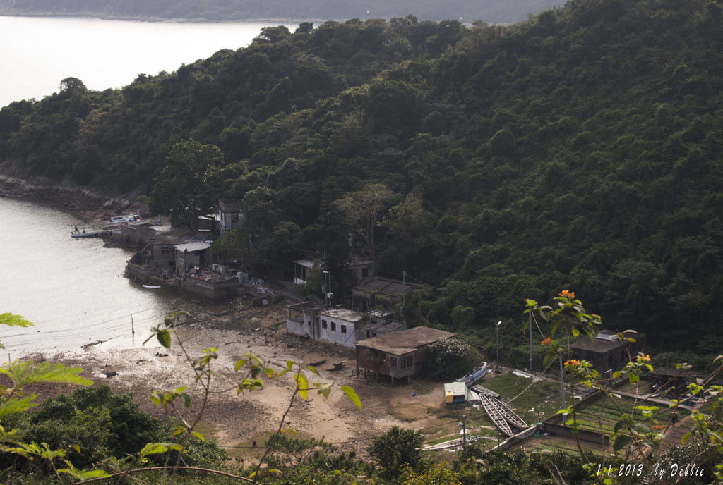 第六段的大潭水塘風景優美,寧靜清幽,不像其他郊野公園那麼多人。因為行錯路,没有經過大風坳。終於到達大潭道,就是第七段的起點,一直都沿引水道而行走了幾公里後,景觀漸漸變得開揚,無敵海景就在眼前。我們就是沿著海岸線而行,經過紅山半島和爛泥灣,看見有幾間木屋,屋前還有菜田,阿婆還挑著兩桶水在灌溉菜田。再走了一會,看到有些遊艇和帆船停在寧靜的大潭灣水面上,遠處還有一艘水警船似在監視著這平靜的水面。