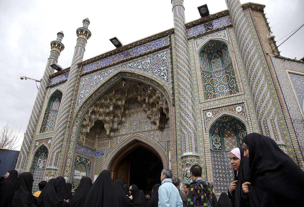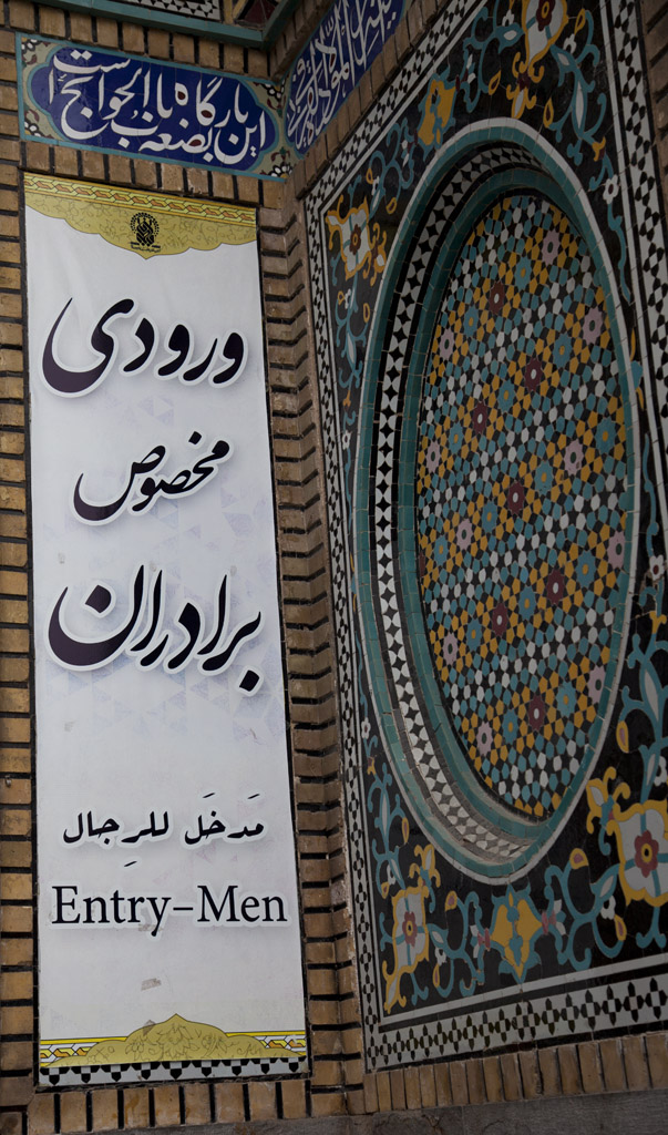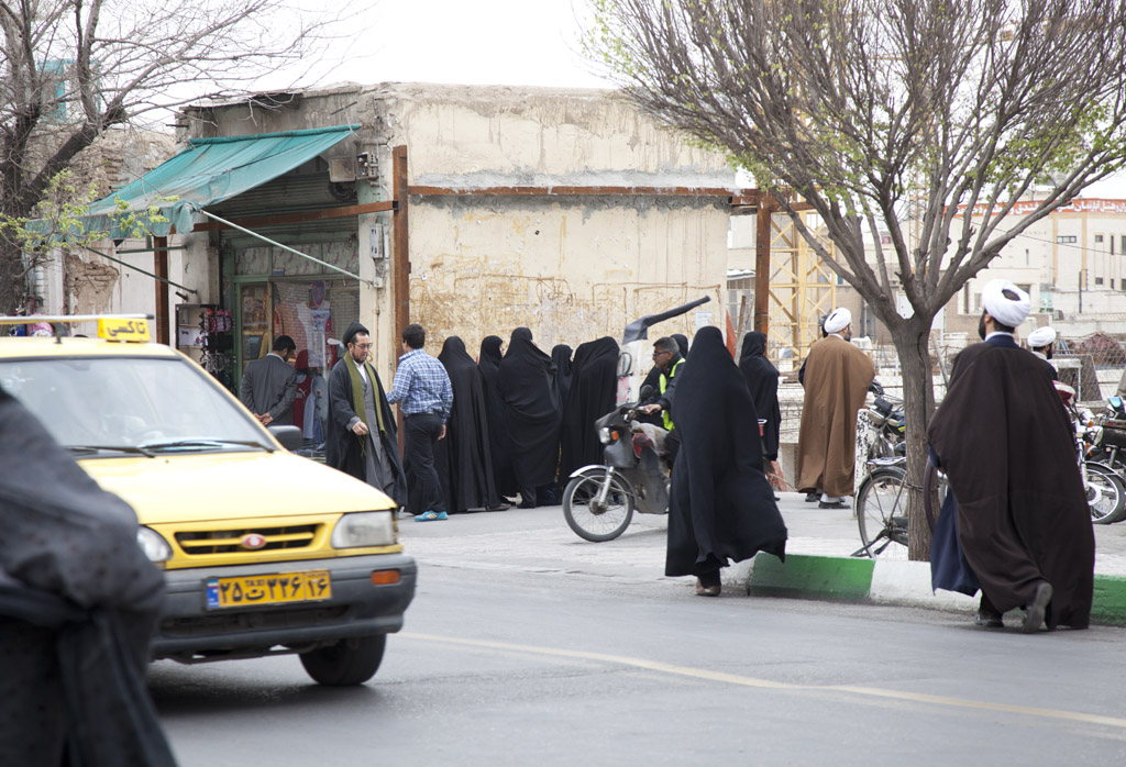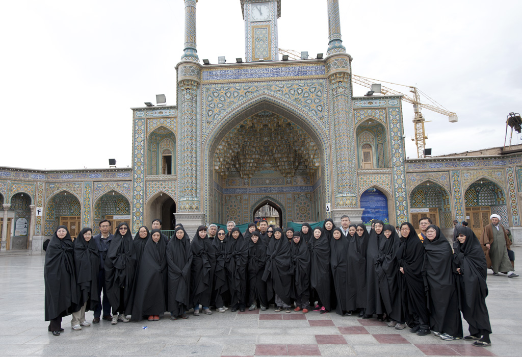 大清早我們從德黑蘭開車直駛庫姆,在差不多到達聖祠時巴士便停下來讓我們把chador穿好,因進入聖祠範圍女士都須穿上黑袍。巴士不能停在聖祠門口,我們便要穿起黑袍走一段路到聖祠。從頭到腳都被罩住有點不習慣,而且背包和相機袋也須放下,因背著東西在黑袍內看起來就像駝子一樣,有點詭異。可能不習慣,袍子時常向後滑,差點還絆倒。再看看街上的婦女,她們穿起黑袍仍然健步如飛,不愧訓練有素!其實chador已不受年輕女性歡迎,只有年紀較大或住在較保守城市的女性才仍然穿著。