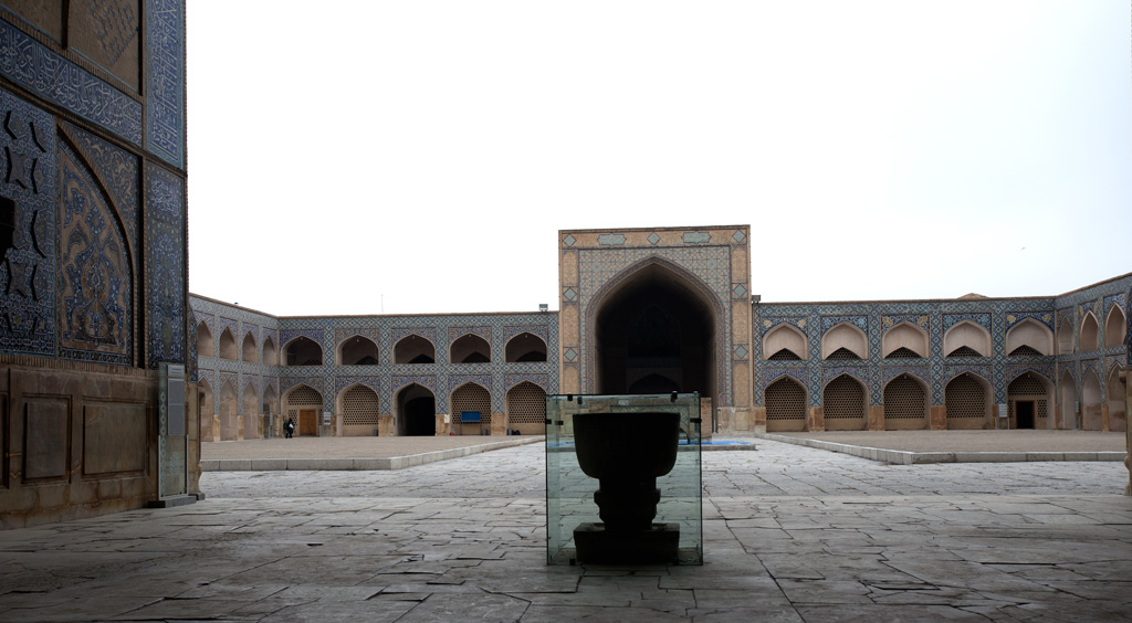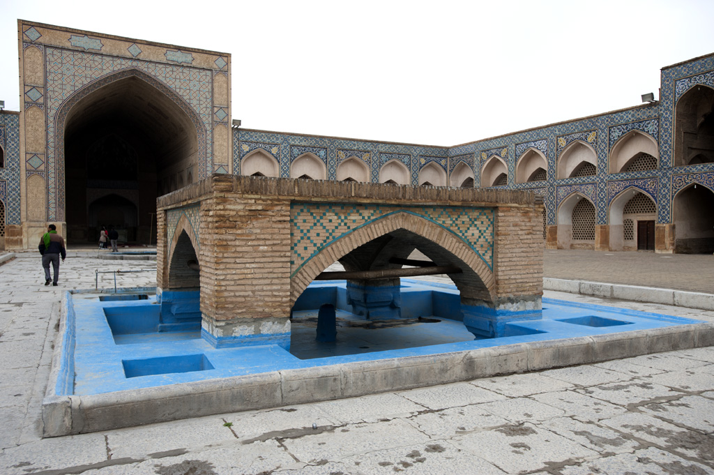 參觀完主殿後,便走到中庭園。就像四合院般,中庭的四面被Iwan(伊萬門)圍繞著,中央有一個水池,是給朝聖者進行儀式用的。從北面的伊萬門進去就是我們剛參觀的地方。