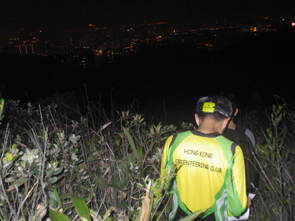 今次是奪分式,路線由自己決定。從起點開始往上走,和其他人一樣先打 2,然後往回走打10,跟住上金督馳馬徑打1。之後就去14,因花了不少時間才找到14,決定從14到16,如夠時間可打12和13才回終點。可惜從14去16很遠,起初以為沿小路走去會很快,怎料要穿過植被,也要下斜(又窄又斜的泥路)。雖然路有點難走,但在幾個位置都可看到香港美麗的夜景,也不忘停下來拍張照片。終於用了28分鐘才找到16(有些隱蔽),時間只剩下不到30分鐘,為了不會超時被DQ,只好跑回終點,還剩下10分鐘。