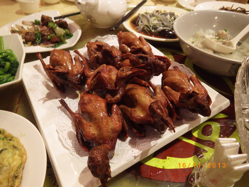0545離家撘港鐡去福田集合,約0800到達福田口岸5號門,各人到齊後便到附近空地裝車,約1小時後正式出發乘巴士到石岐午飯。去石岐的路程要2個多小時,因為早上太早起來,大家都趁機在巴士上補眠,養好精神下午開始騎行。12時多到達午飯的地方-石岐佬中山菜館,菜館很大,也很多人。近門口處都擺了很多石岐特色小食,如有菠蘿餡的菠蘿包、雞仔餅、欖角酥、蘋婆果等等,每款吃一件已夠飽了。再走進大堂,放了很多漁缸,可先在這裡選了想吃的海鮮然後再替烹調。大堂另一邊是用餐地方,木製小舟代替了餐桌,十分特別。二樓分成了很多大房間,我們就在其中一間吃飯。午飯很豐富,當然少不了名菜石岐乳鴿。