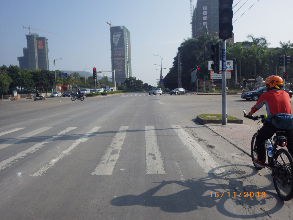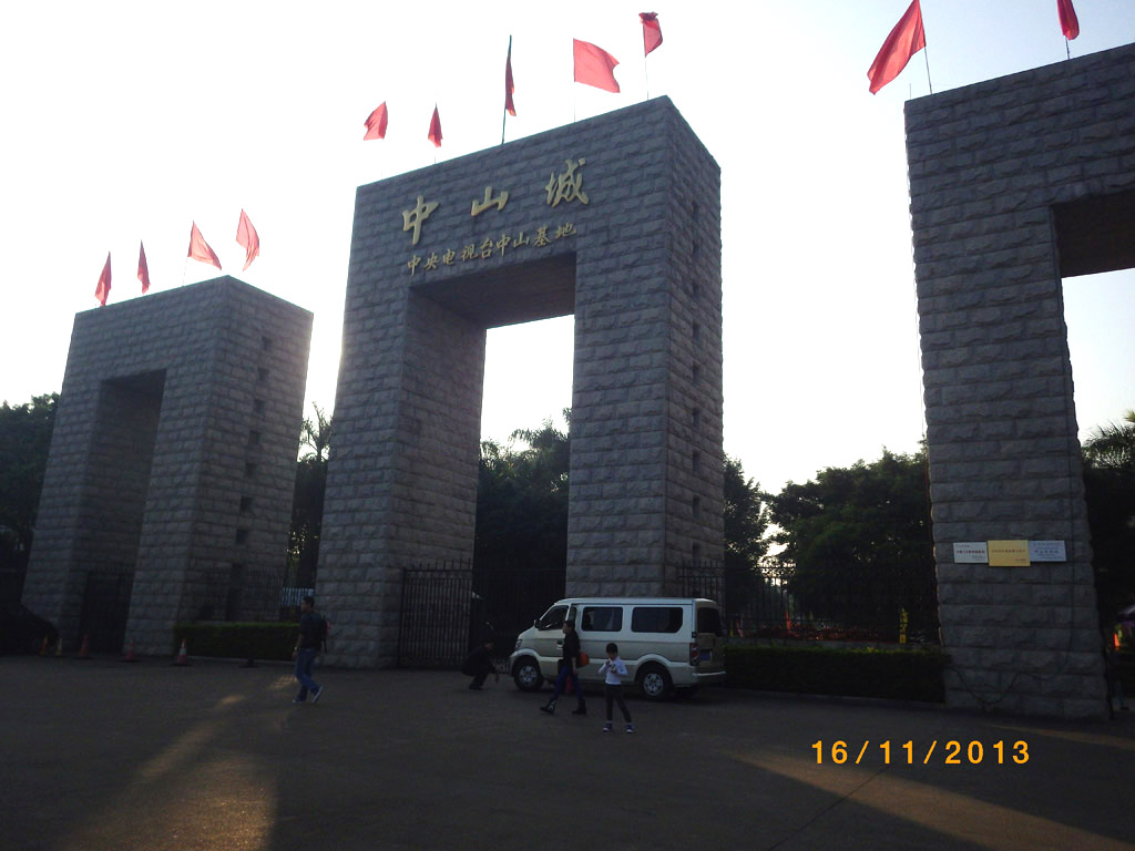 吃完飯後就在附近取回單車,開始騎行,目的地是珠海中大商務酒店。約1420起步,經過一段市區的路後就上111省道。道路很濶,平坦易走,雖有很多車及大巴士,只要在右線騎行就沒有問題。沒多久就到達第一個景點中山城,把車停下各人都在大坊前拍照。接著再沿省道到孫中山故居紀念館,在門口“天下為公”前拍照留念後,就開車到唐家灣鎭莫氏大宗祠。看完所有景點,就先到附近中大商務酒店(中山大學珠海校區內)check-in,再去吃烤羊晚餐。