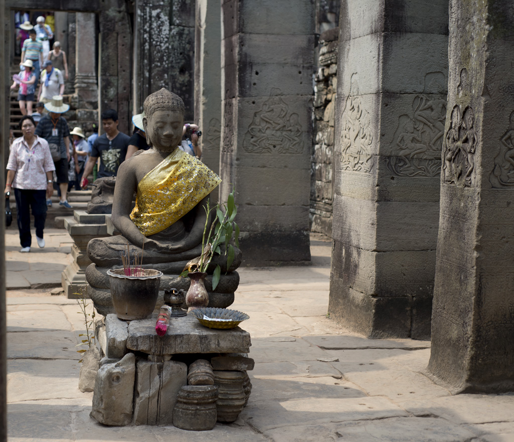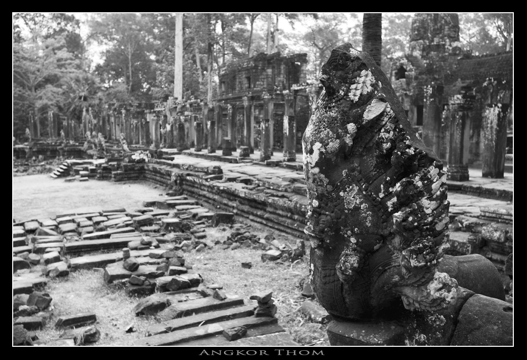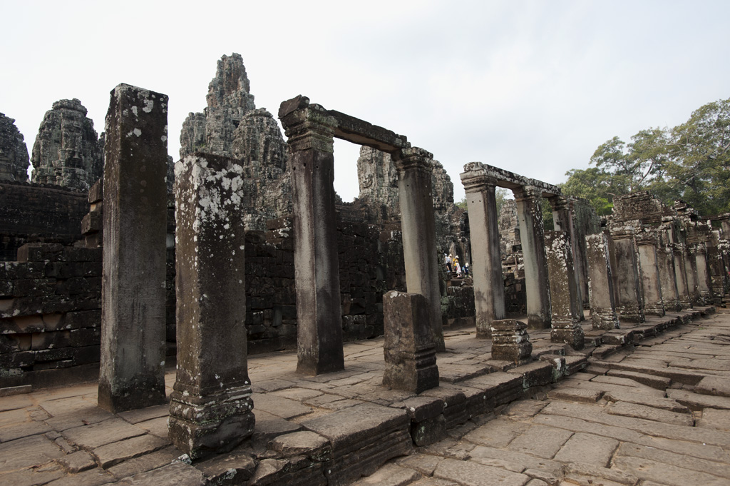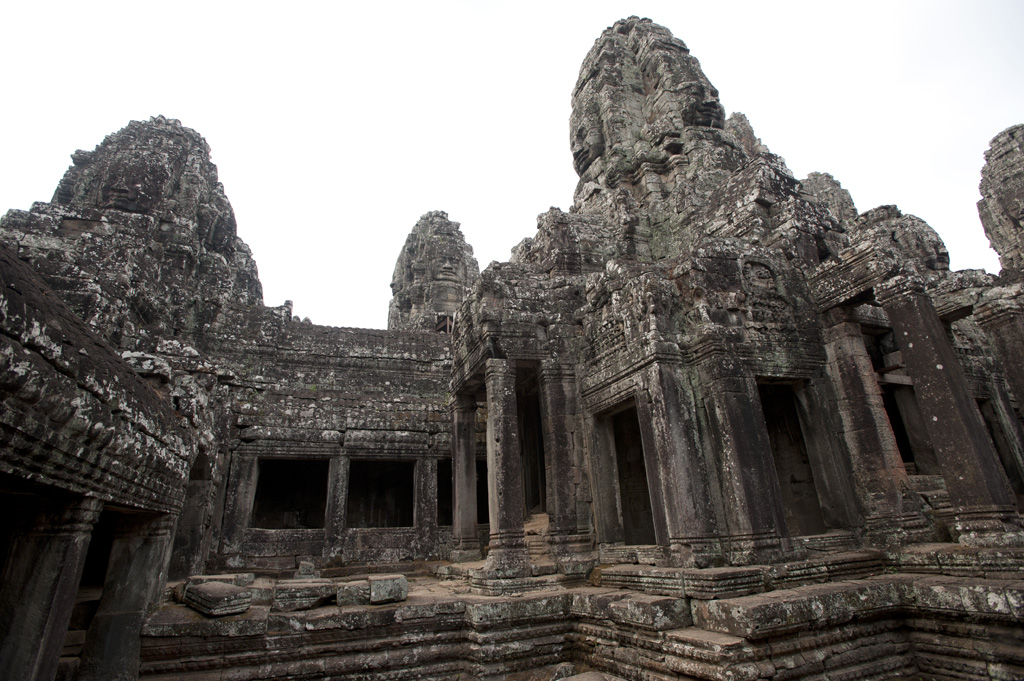 巍然聳立在大吳哥中心位置的巴揚寺,是吳哥王朝的國寺,由Jayaavarman VII興建,之後再經過歷代國王繼續加建,門框、房間、塔樓的高度不一,混合了印度教和佛教的特色,令整個建築變得錯綜複雜起來,好像叢林塔一樣。巴揚寺和其他寺一樣面向東面,那49個佛的笑面就分別向著東西南北四個方位。寺廟分為三層,有兩重刻有浮雕的迴廊環繞,側邊有石獅子和那迦(Naga)守護。東門入口的廟門(gopura )大部份已倒下,只剩下巨大的石塊和柱子散滿一地,相信考古學家要花上很多時間才能把巨石組合起來回復原狀。