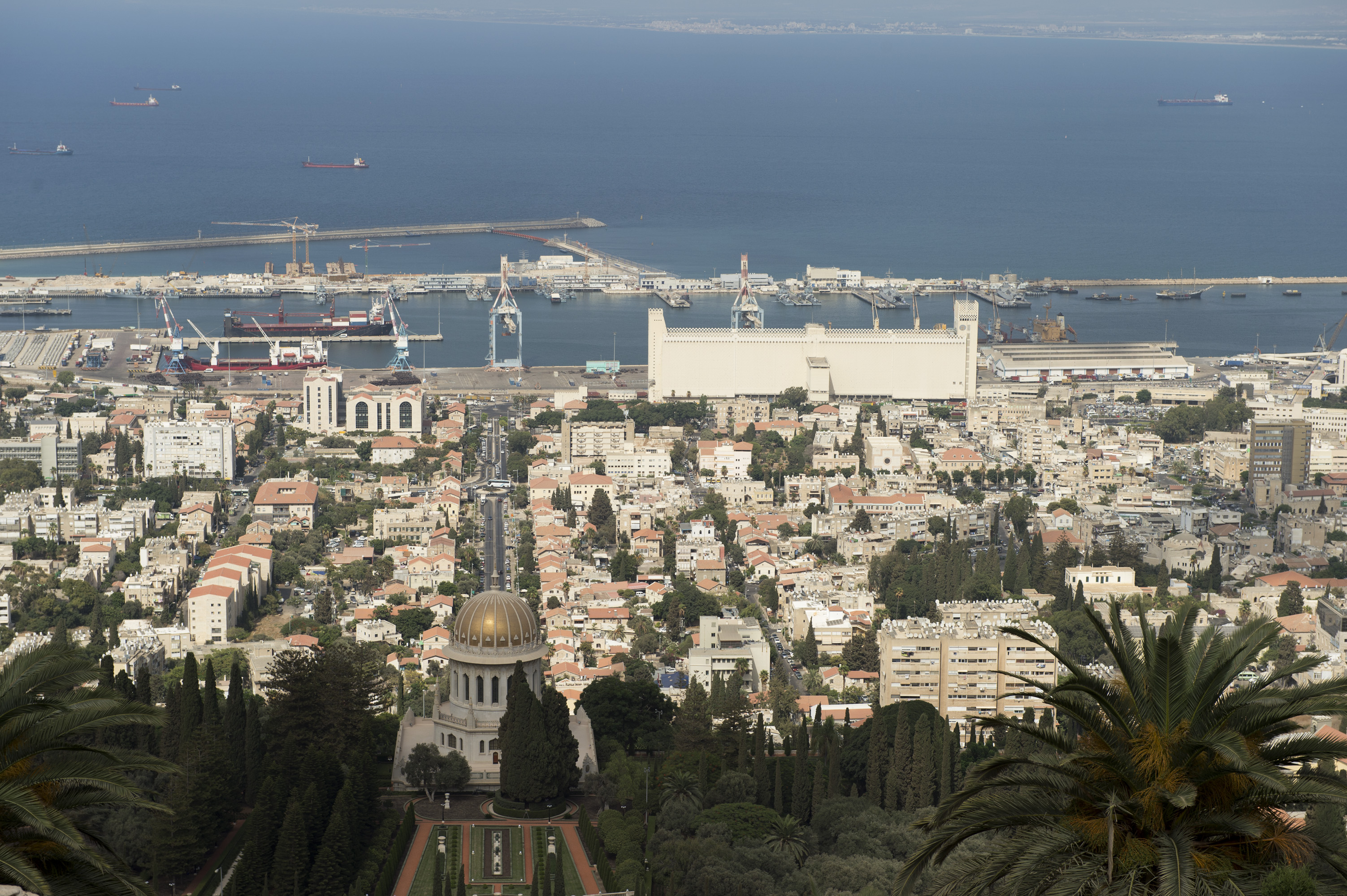 往拿撒勒的途中,經過以色列第三大城市海法。這個城市很安靜和整潔,還有一座依著迦密山(Mount Camel)層層相疊而建的巴哈伊空中花園(The Bahá’í Gardens)。這座空中花園被列入為世界文化遺產,也是巴哈伊教的聖地和巴哈伊教先知巴孛 (Bab)的陵寢。