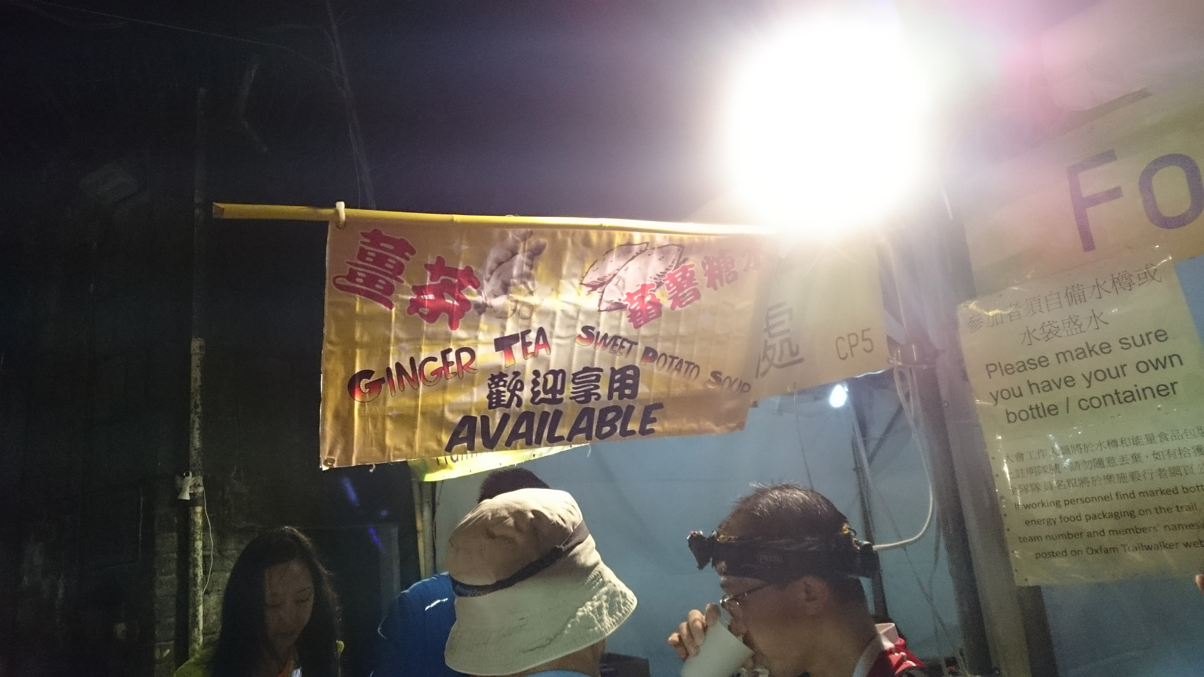 我曾聽過基維爾營CP有五星級設施,很多參賽者也抵受不住引誘而在這裏退出,因為已走了差不多一半,體力已消耗很多,大會安排了很豐富的食物給大家補給,還有床、按摩服務,當你試了這些服務後便舒服到不想再起來。我們隊伍很克制,只是車輪手飲鴻福堂老火湯(今年特別贊助)、吃杞子燒賣、飲咖啡和茶提神就即刻離開這個魔鬼營地。
