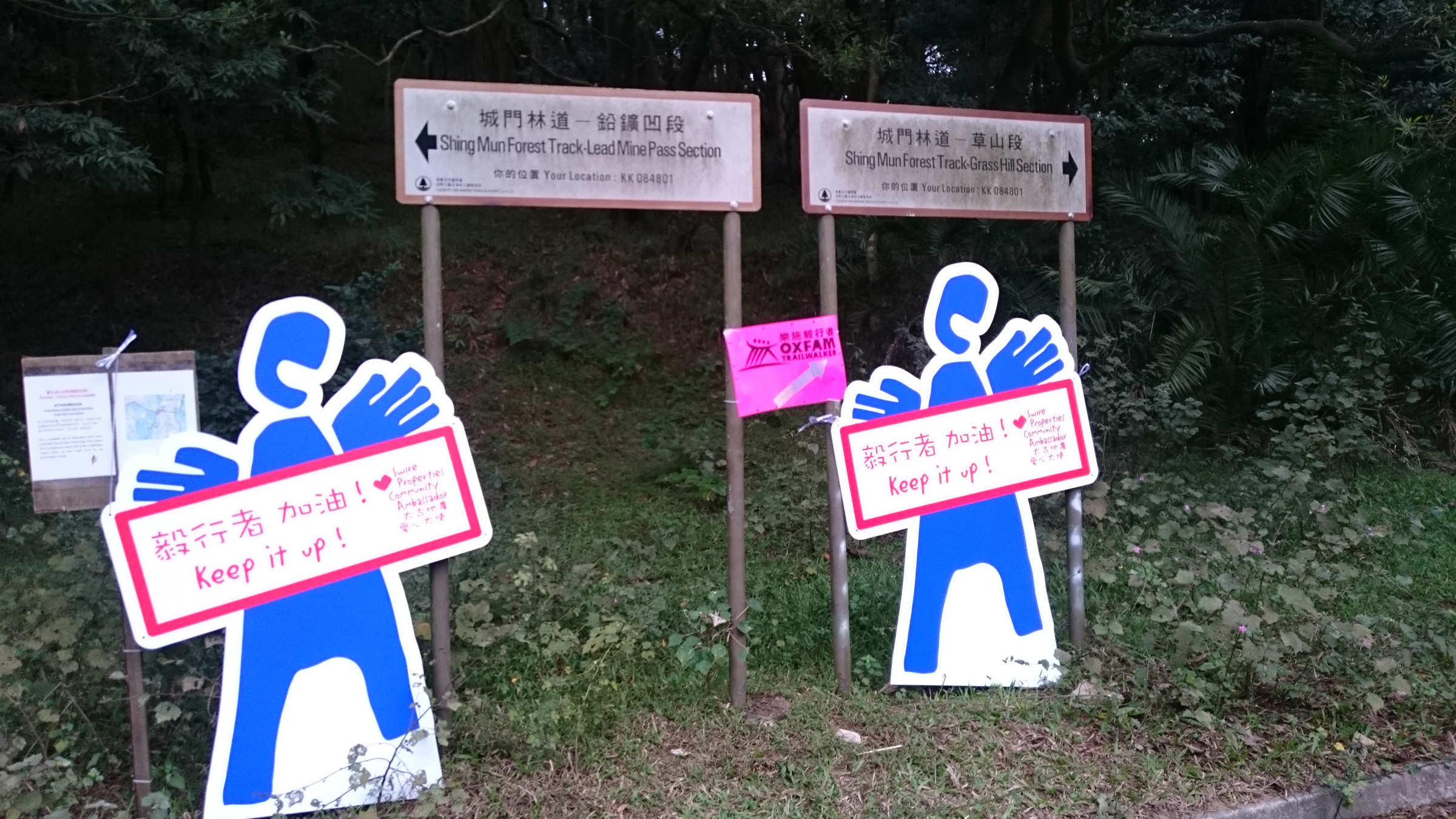 第一次在天亮前上針山,空氣清新涼快,不像平常總有一股熱氣籠罩著。縱使已走了大半路程,天黑看不清楚遠遠的山頂心理上不覺太辛苦,很快便上到針山頂。那時剛好天亮,可惜有霧看不見日出,稍為休息2分鐘後就快步下山,希望可以快點走過草山到鉛鑛坳CP7。