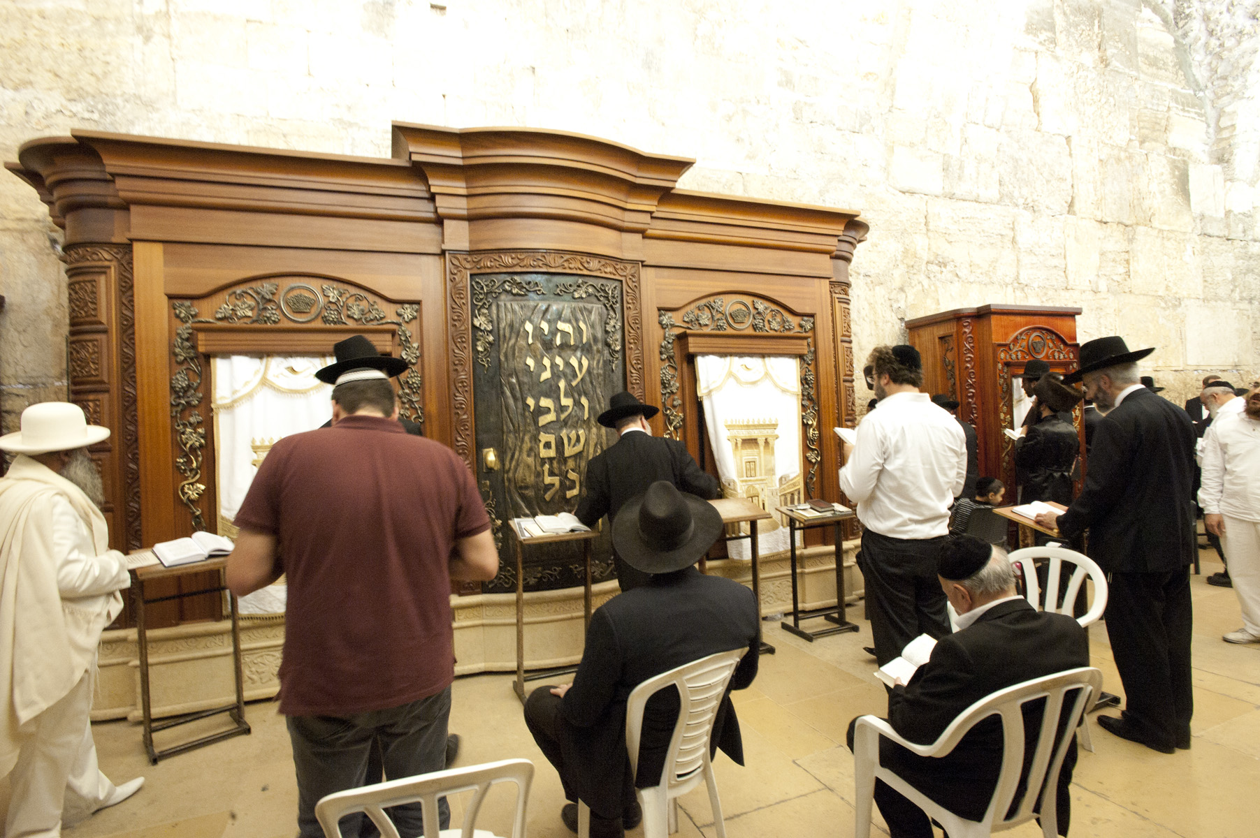 哭牆的祈禱區分為男女兩區,教徒都面向牆壁,坐下或倚牆而站,手執摩西五書(Torah) ,一邊鞠躬,一邊祈禱。鞠躬是對神的說話表示尊敬,因此當讀到神的名字時,他們就要鞠躬。