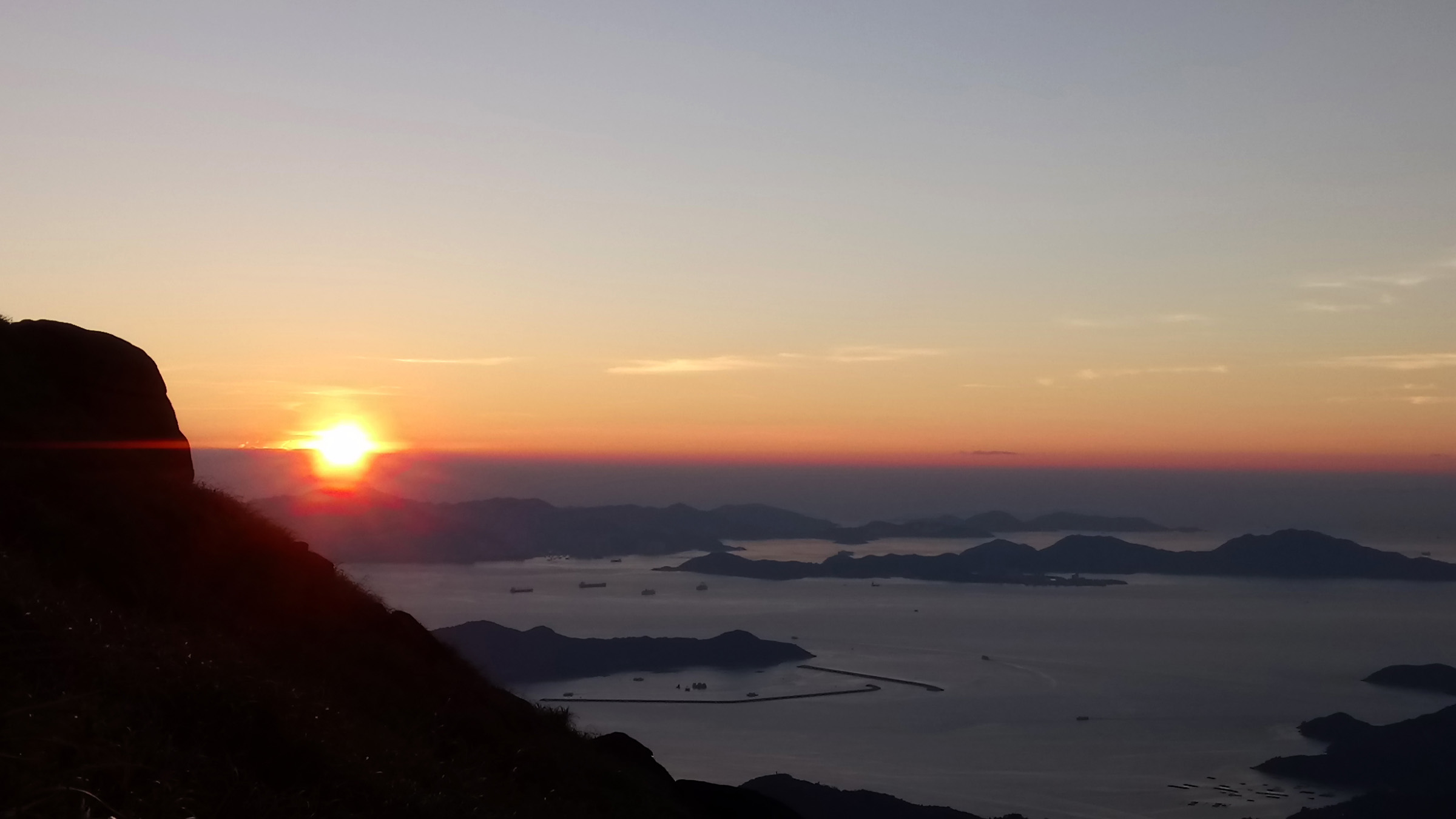 半夜12點由東涌起步,行360救援梯至昂坪,因為月色很好,這一段也不須長時間開頭燈。去到昂坪比較黑,還有很多野狗,經過牠們時都要保持鎮定。跟住就上鳳凰山,中途都有人經過。上到山頂已有十多人在,當時很大風又帶點寒意,他們都早有準備帶了厚衫,因為還有2個多小時才日出。