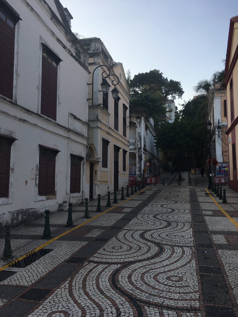從議事亭前地走到荷蘭園,避開了煩囂的都會,走進了一個充滿文創氣息的地方,在這裡很適合放慢腳步,感受一下澳門的文化氣息。沿著瘋堂斜巷行,整條街道都可見到復古的建築物,佈滿葡式建築風情-清安醫所門診部、大瘋堂、望德聖母堂、演藝學院音樂學校、仁慈堂婆仔屋、文化創意空間。澳門街道,到處可見鋪上了石仔,這些都是葡萄牙殖民時遺留下來的,由澳門政府保留及修復,為這個城市添加一點異國風情。