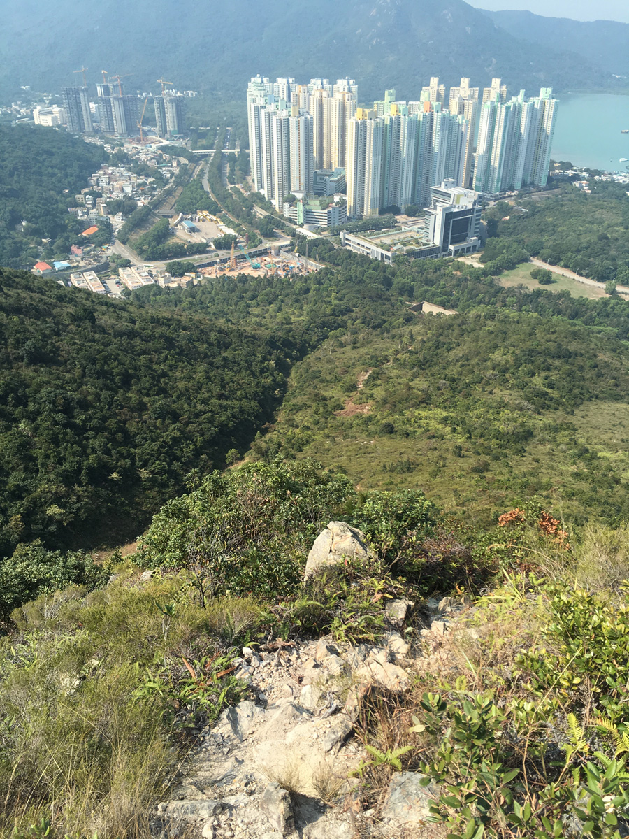 由東涌起步,上山的入口在警局對面馬路,沿水渠走一段上斜至盡頭,就會接回山路。山路是小徑,兩旁的草很密,越往上走石頭也很多,有一少段必要攀爬。越往上走漸漸風景也變得很開揚,東涌就在腳下。終於過了很多大石堆,又變回比較可跑的山路,原本打算上婆髻山,怎知一直跑而錯過了一條上山的小徑,到發現時已相隔很遠,留待下次行中部山峰時再去打卡。