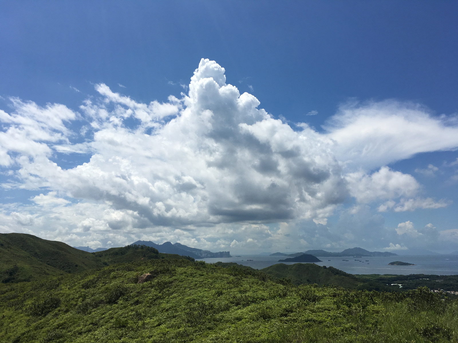 之後上上落落一些小山丘就見到左面有一個分支上花瓶頂,由於太曬太熱,我們沒有上頂,改而向右面的路下山去花瓶石。之後系主經過草灣、三轉、二轉,走一小段泥路通過閘門,汲水門大橋底向左走很快便來青馬管制站的巴士站,可坐巴士到東涌。
