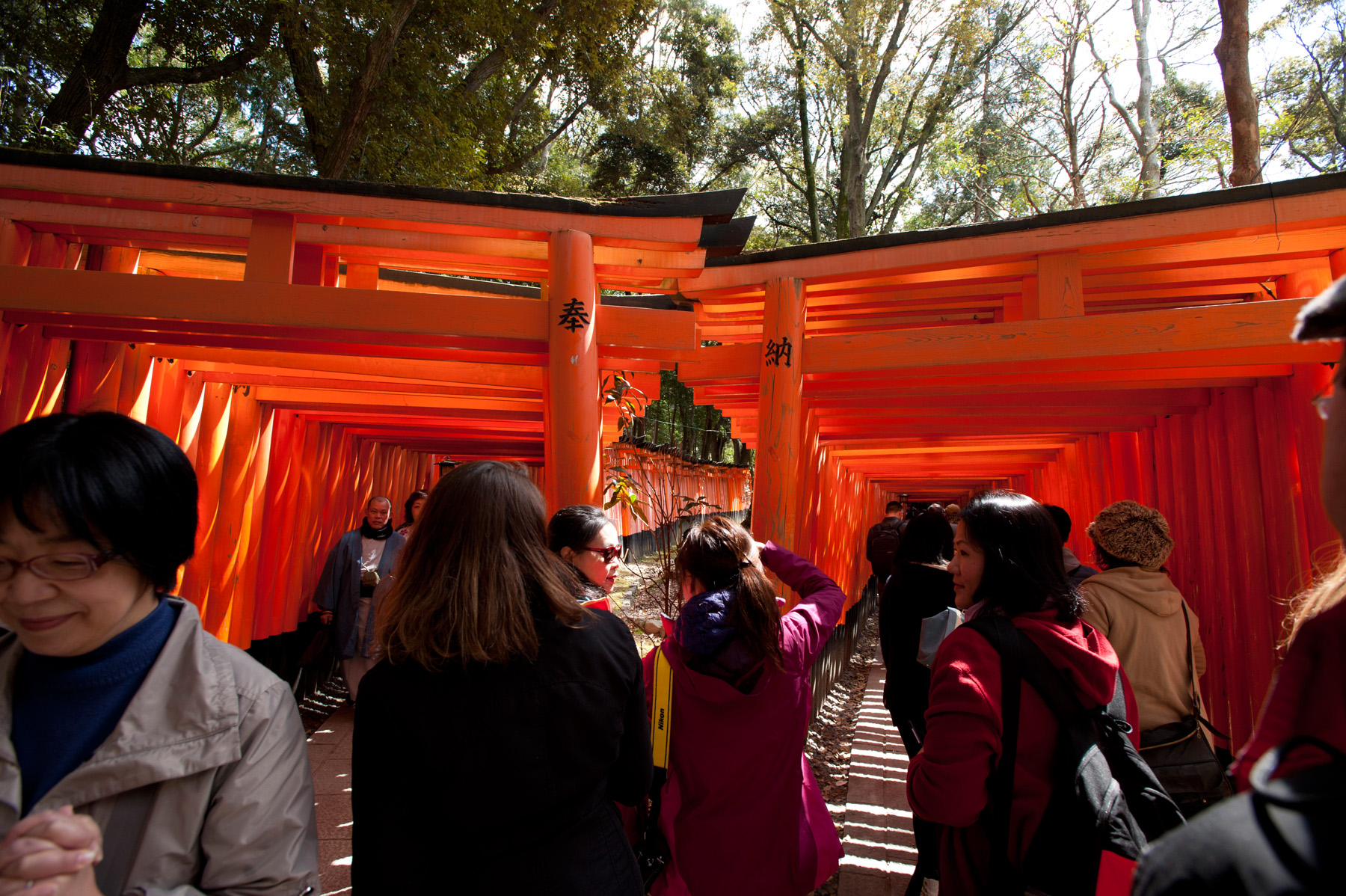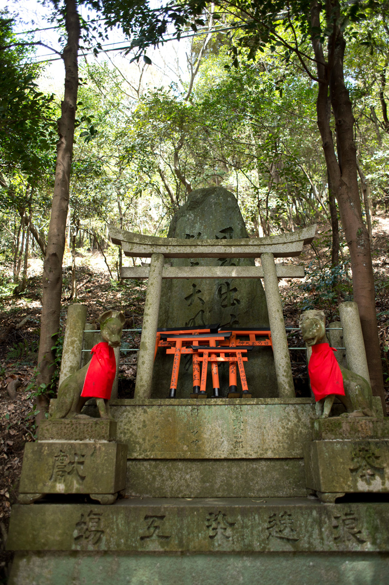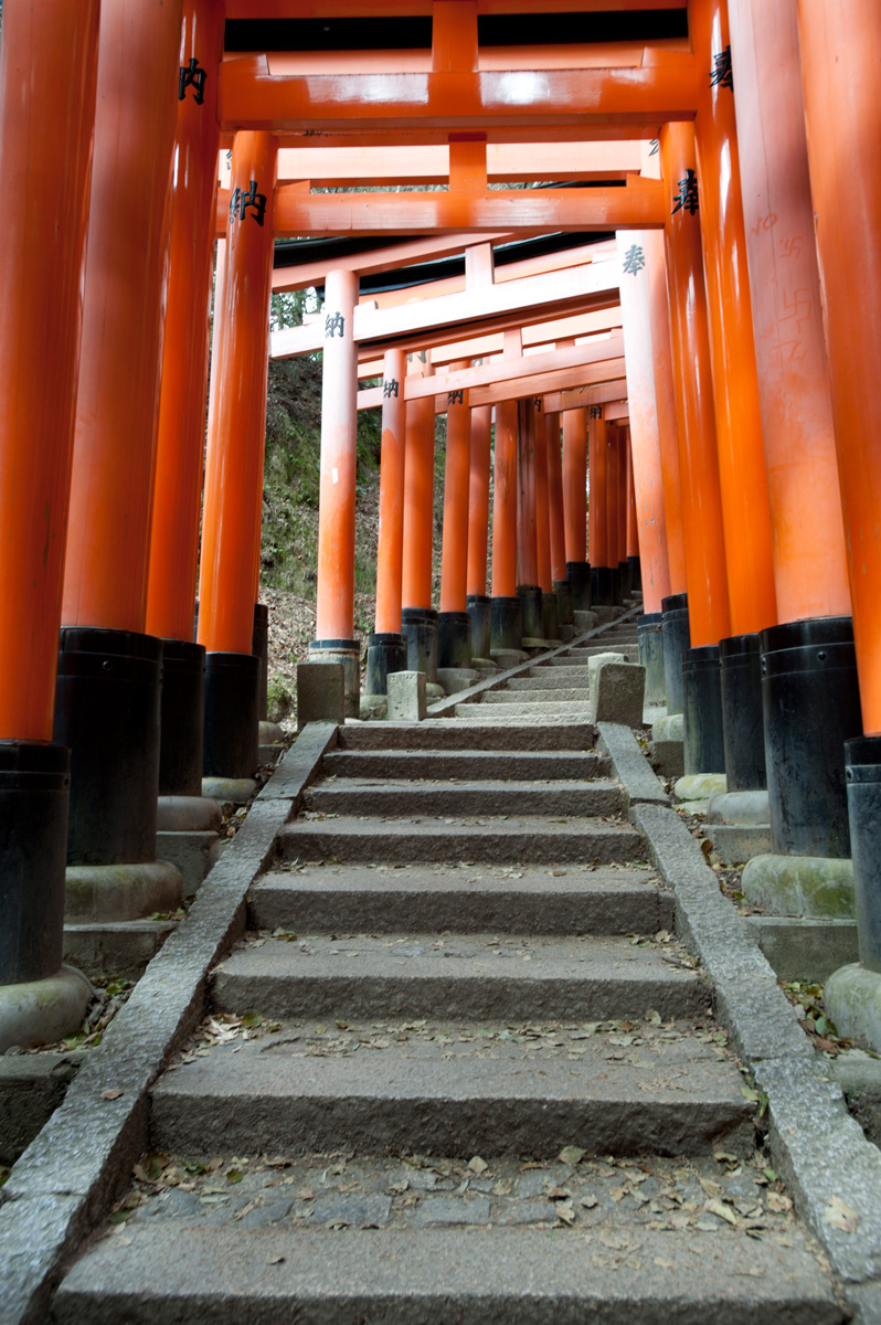 稻荷山可說是神的領域,鳥居劃分神和人類所居住的世界,鳥居就代表神域的入口,所以每當進入神社都先要經過鳥居。伏見稻荷大社是神降臨的地方,因此建了很多鳥居。伏見稻荷大社最熱鬧的地方是山坡上的千本鳥居,幾千座紅色的鳥居,分成幾排,有大有小從山腳一直排到山頂。江戶時代開始,參拜者都會向神獻上鳥居祈求生意繁盛,而這風俗一直延續下去,鳥居不斷增加,整個稻荷山已有一萬之多。
