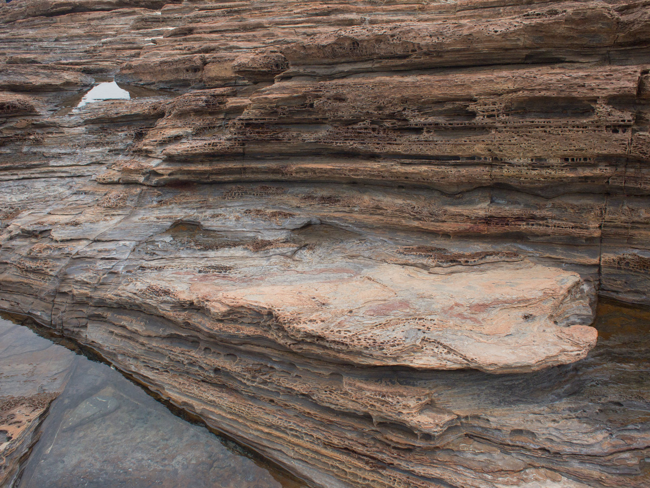 下船之後經過公廁士多後便沿著海邊行,風景怡人,可以感受到大自然的力量,造成東平州獨有的地貌奇觀 – 一層層的頁岩、廣闊的海蝕平台沉積岩,還有地標 「龍落水」、「難過水」、「斬頸州」、「更樓石」。