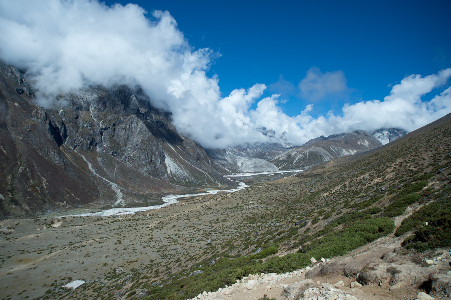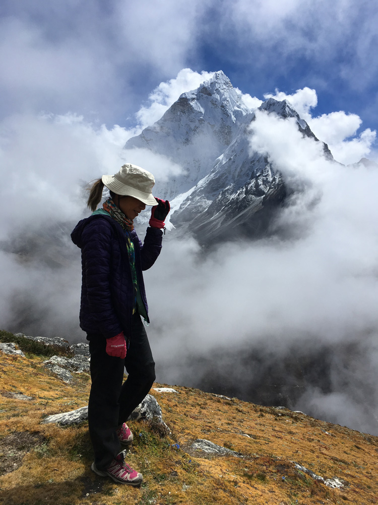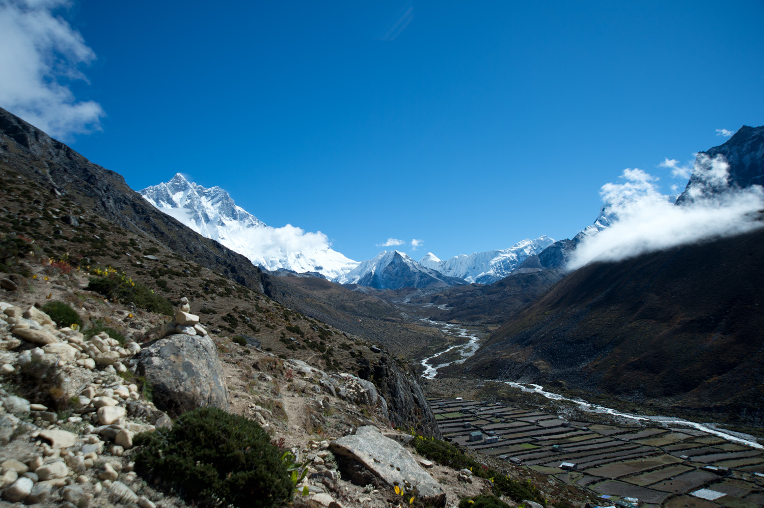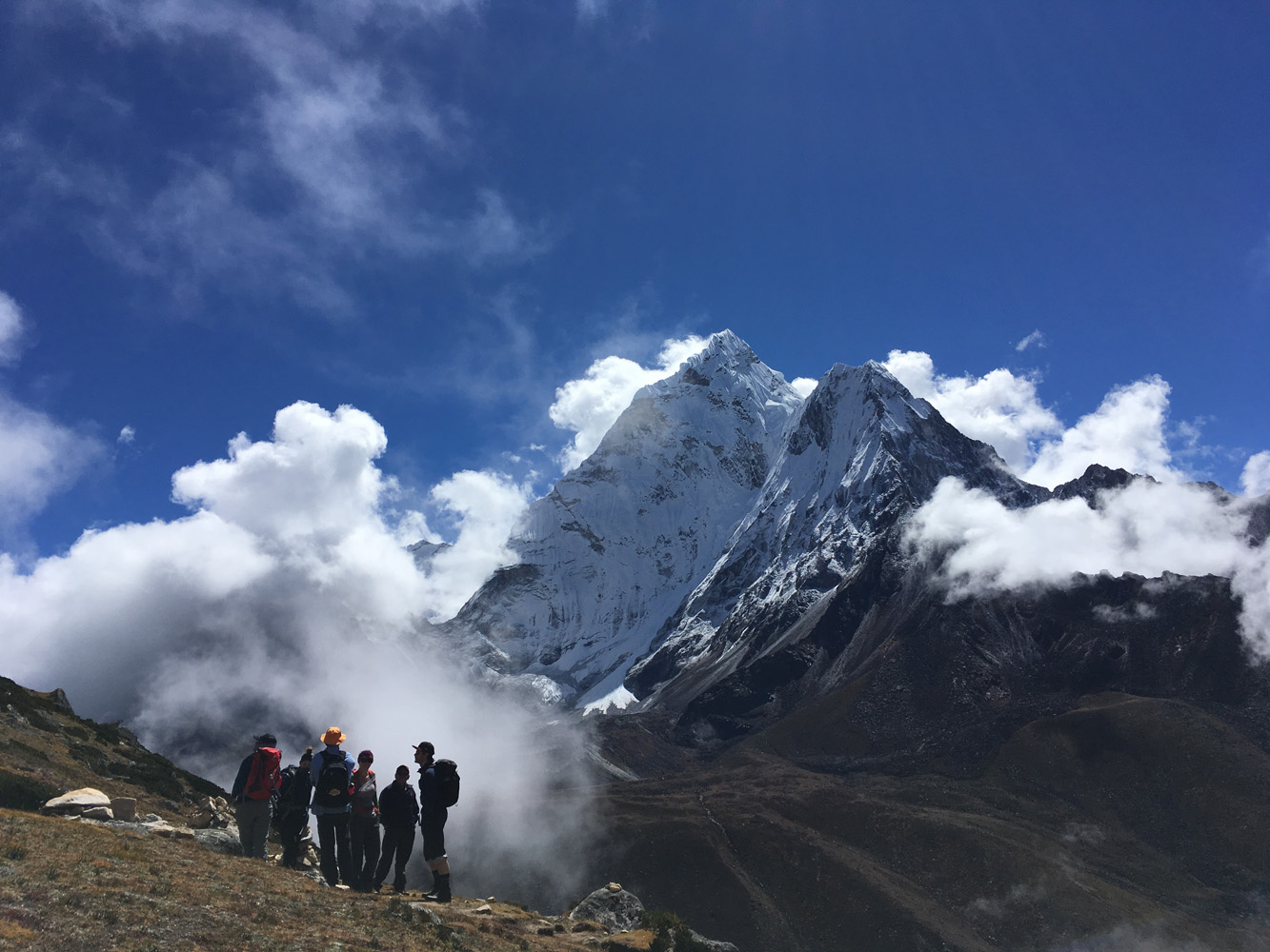 由tea house出發行不多久便開始上斜,Joti指著不遠處的一座山,說是我們要上到山頂,山路很陡峭,望見已有點嚇人。幸好行了一會便看到羣山美景,也是第一次這麼清楚看到Island Peak 和 Lhotse。我們休息了一會再往上走,便看到Ama Dablam,景色壯麗。