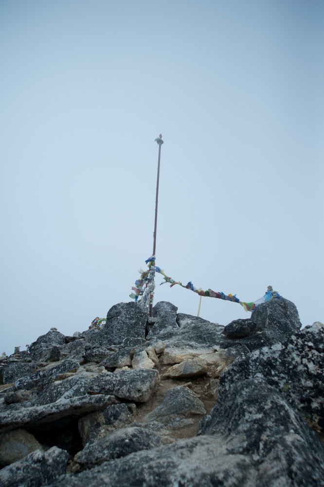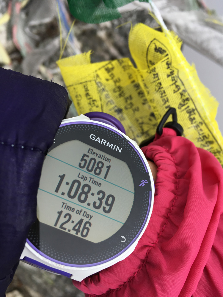 不經不覺上到了5080M的山頂,”The 3 rules of mountaineering” 說得沒錯,似乎很遠、很高、很難,最終也上到了。山頂掛滿經幡,其實後面就是很筆直的懸崖,我們拍了幾張照片便下山。