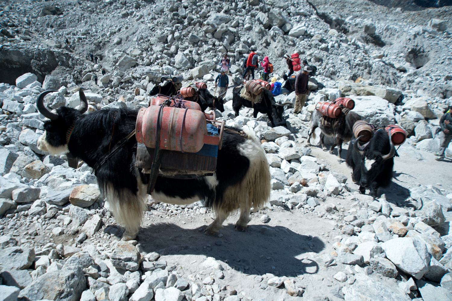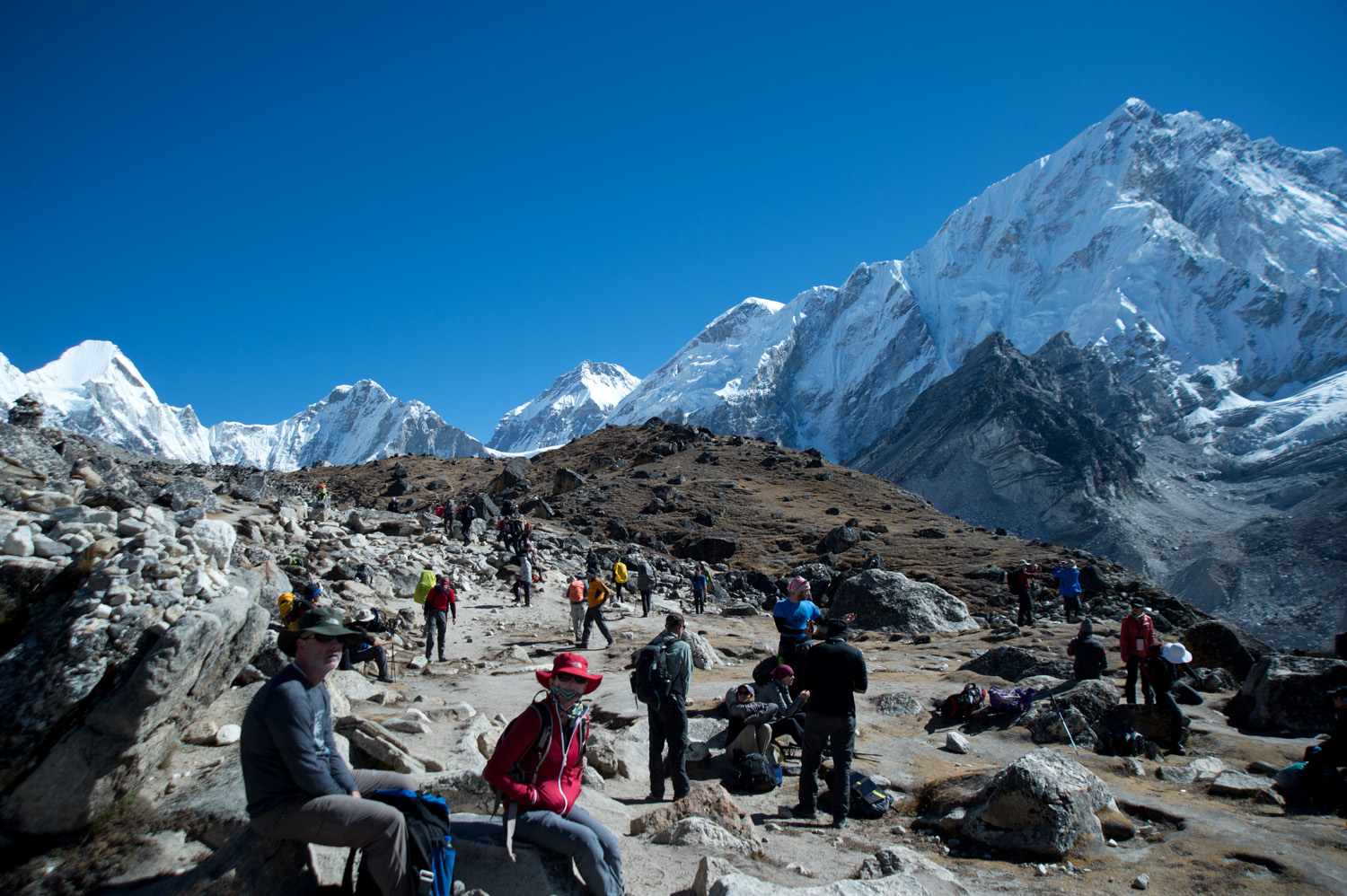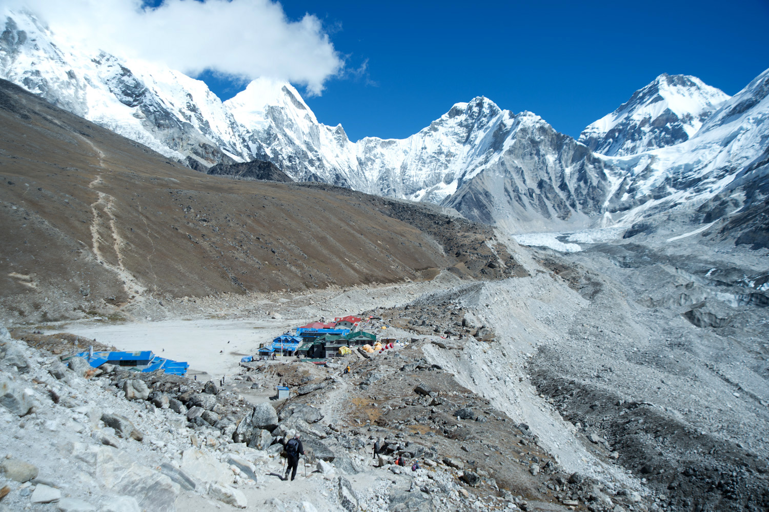 行走在這種路段很費力,我們都停下很多次作短暫休息,也可欣賞另一種風景。之前每天都看到Ama Dablam,現在已被其他高山取代了- Pumori, Nuptse. Lhotse。約三個小時後終於到達Gorakshep,它是上Everest Base Camp最後的一個休息站。我們先放下行李到tea house,吃午餐和休息一下,中午十二點出發去base camp。