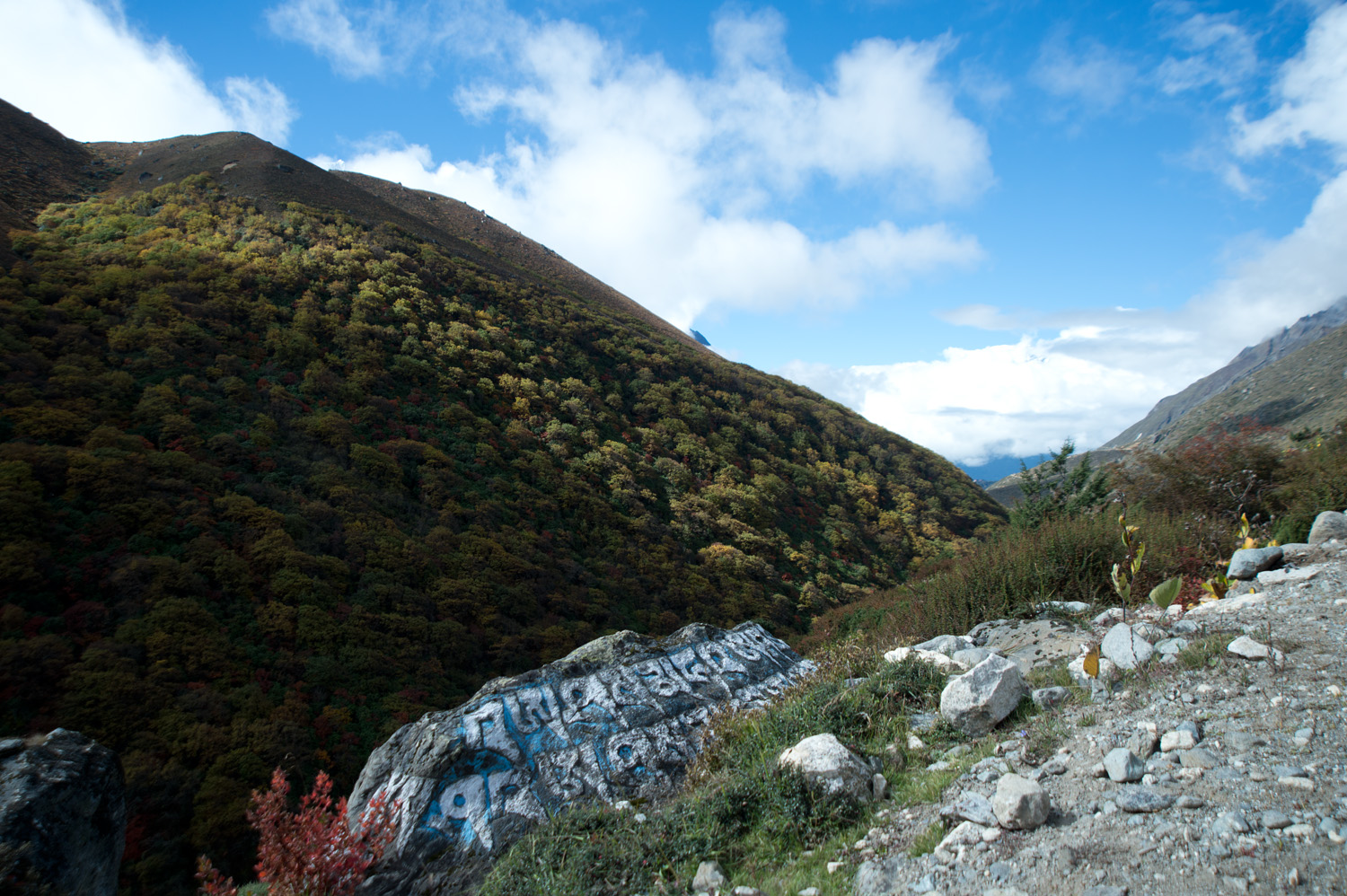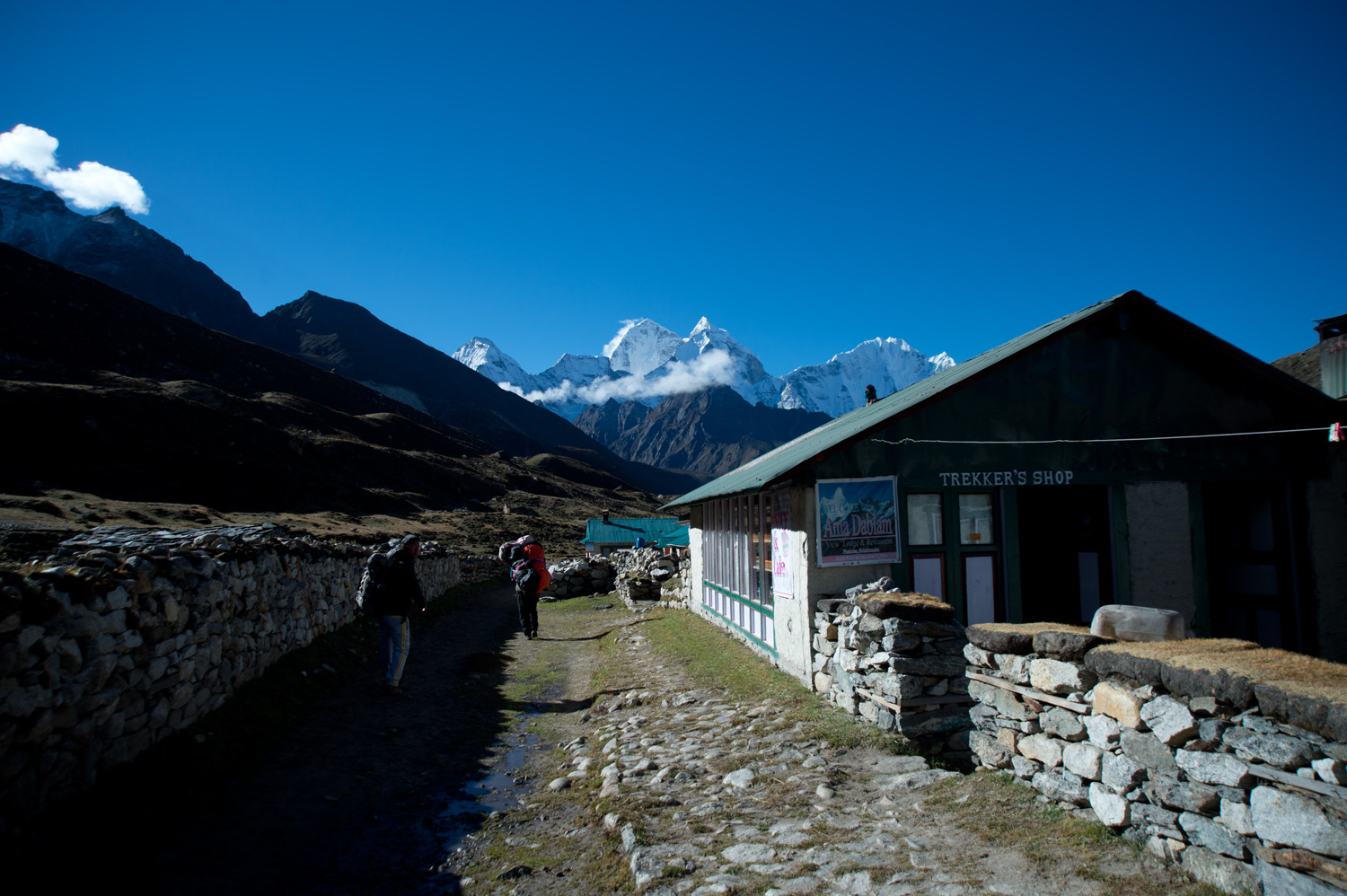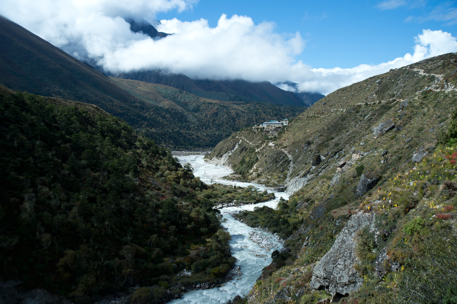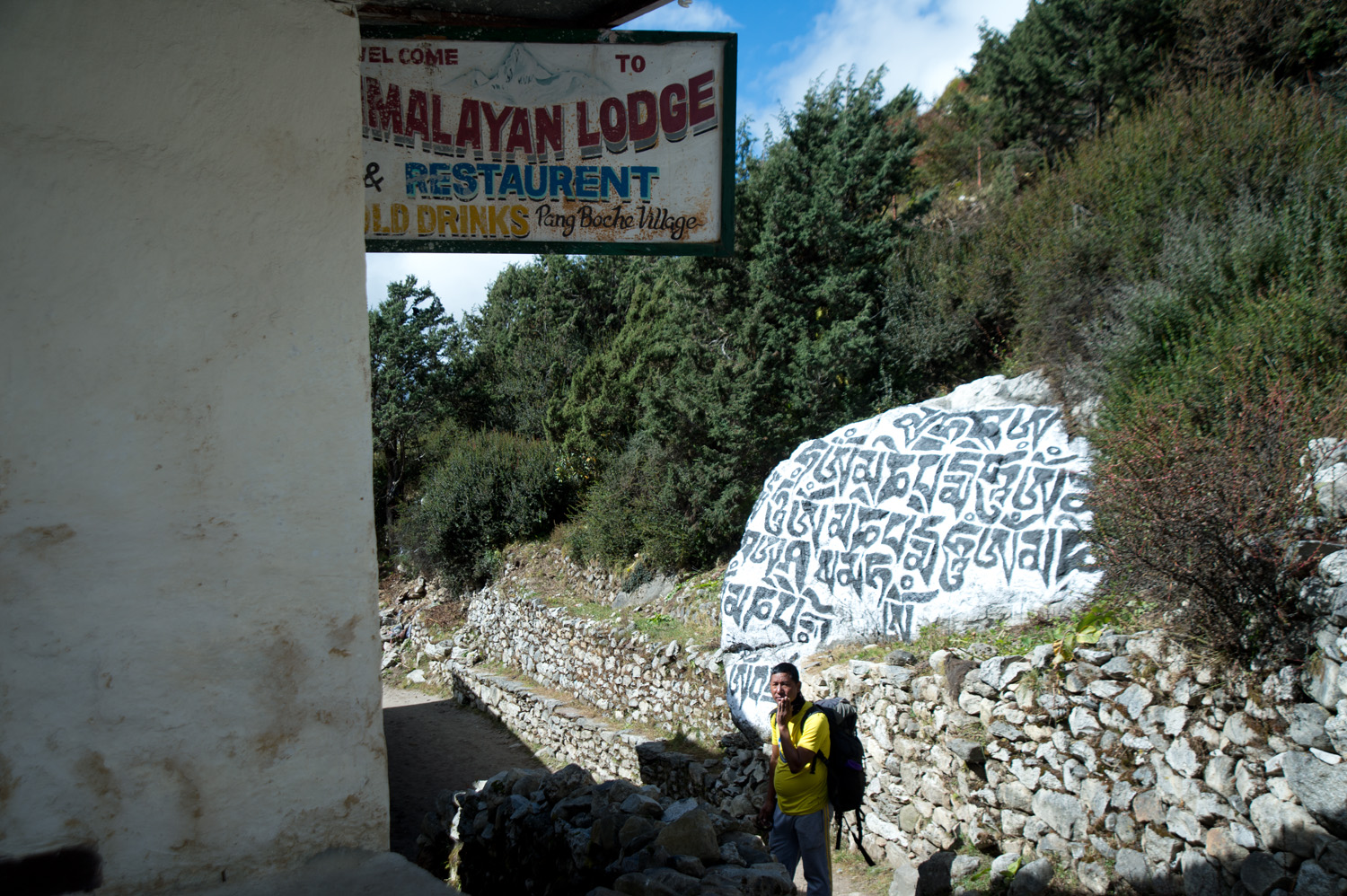 今天的路都是下山,所以不太費力,而且空氣也沒有兩天前那麽稀薄,所以走起來很舒服。沿途的風景盡是藍天白雲,也多了植物。大約三個多小時已到達Tengboche,Ras Kumar帶著我們的行李一早去到tea house,替我們拿到最後的一個房間,總算不用住在上次那間冷得像冰屋的鐵皮屋。