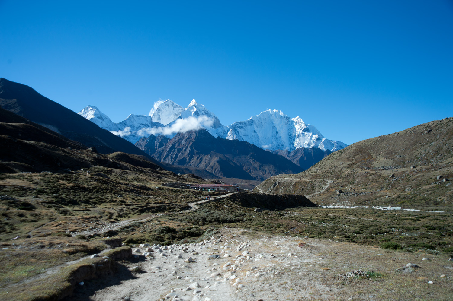 Pheriche的tea house很多舒服,房間又大,望出窗外是一大片綠草,還有幾隻牛在吃草。今早的陽光很舒服,吃完早餐便立刻出發,Joti希望可以盡早去到Tengboche,可以拿到Himalaya Lodge的房間。