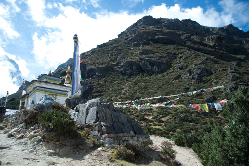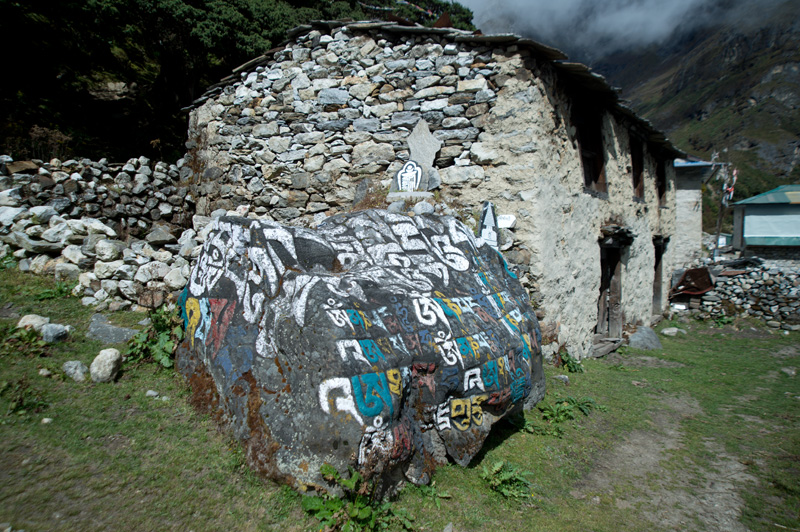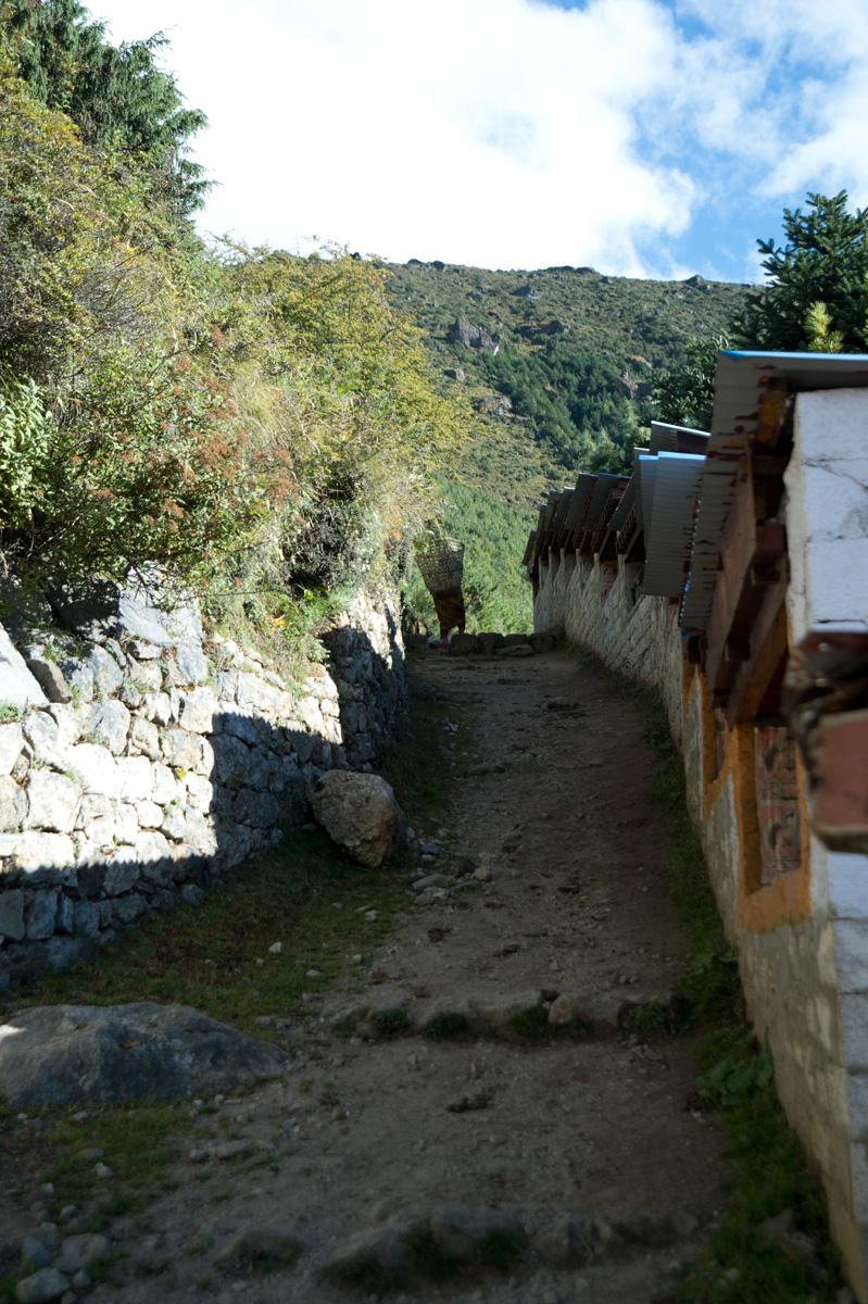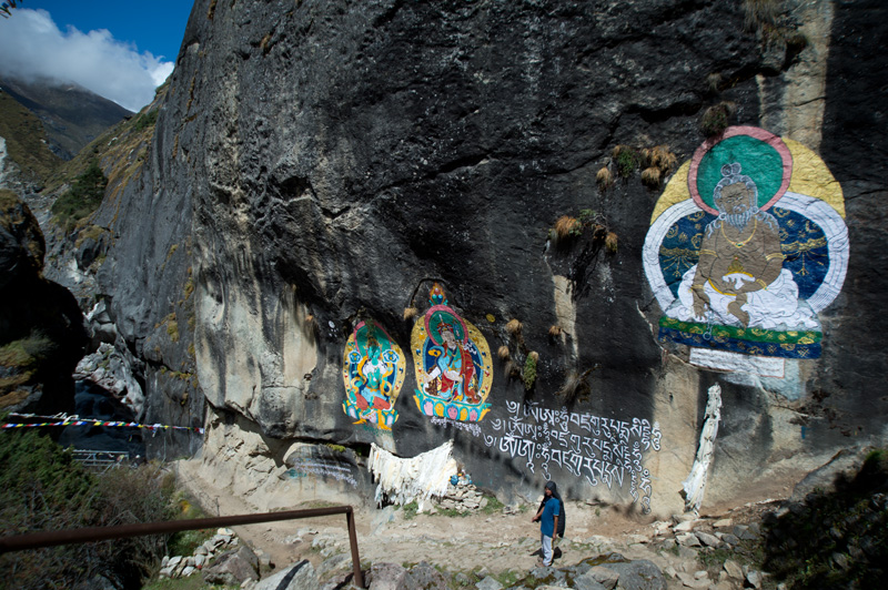 每次午飯後的路都是比較費力,今天也不例外。沿著路往下走到河邊 [Bothe Khosi],路也變得很窄,旁邊的大石上有很多佛教壁畫,過橋後可以看得更清楚。落了必然要上,這一段也較費力,上了150米後終於到達Thame。以為可以鬆口氣,原來距離目的地Thame Gompa還有25分鐘上斜。今天只是行了4個多小時,但這是整個旅程最辛苦的一天,不知為什麼竟可累到行一步也沒有力,連day pack也要Joti代為揹了一段路。
