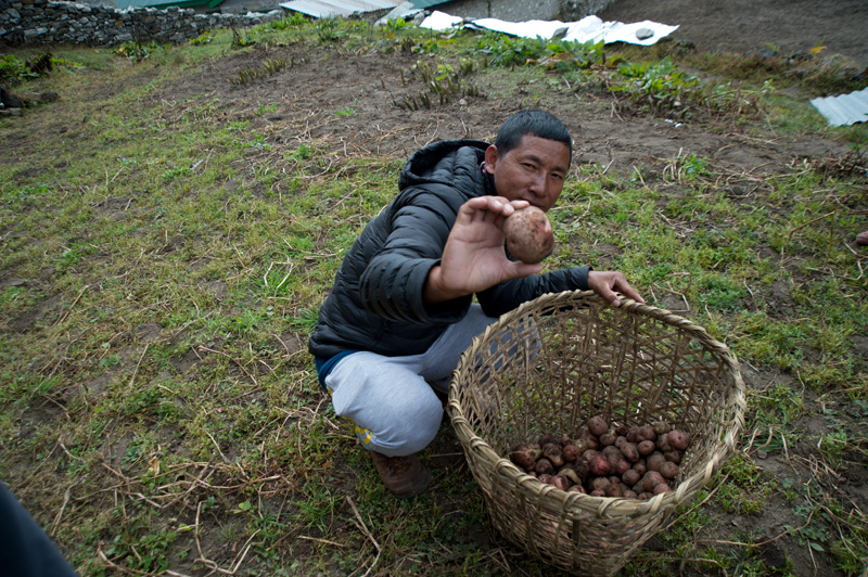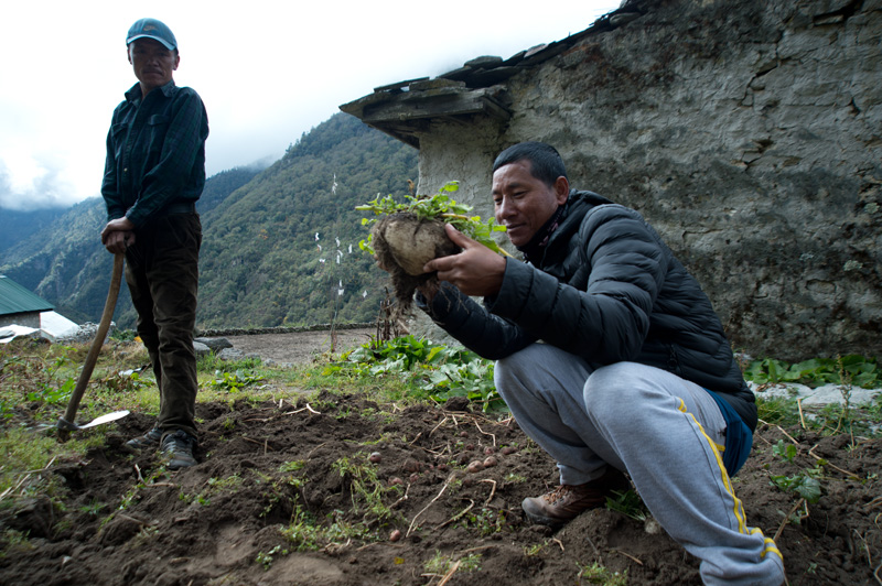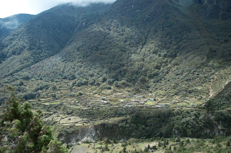 之後來到Phurte Forest Nursery,四處都是松樹和杜鵑花,可惜這個時候不是花期,只有樹木。Phurte是一條很小的村落,只有幾間屋和種了薯仔的農田。沒多久來到Thamo,這是一條大村,也有一間很大的寺院,我們沒有停下,行了1.5KM左右在另一條村Samde吃午飯。