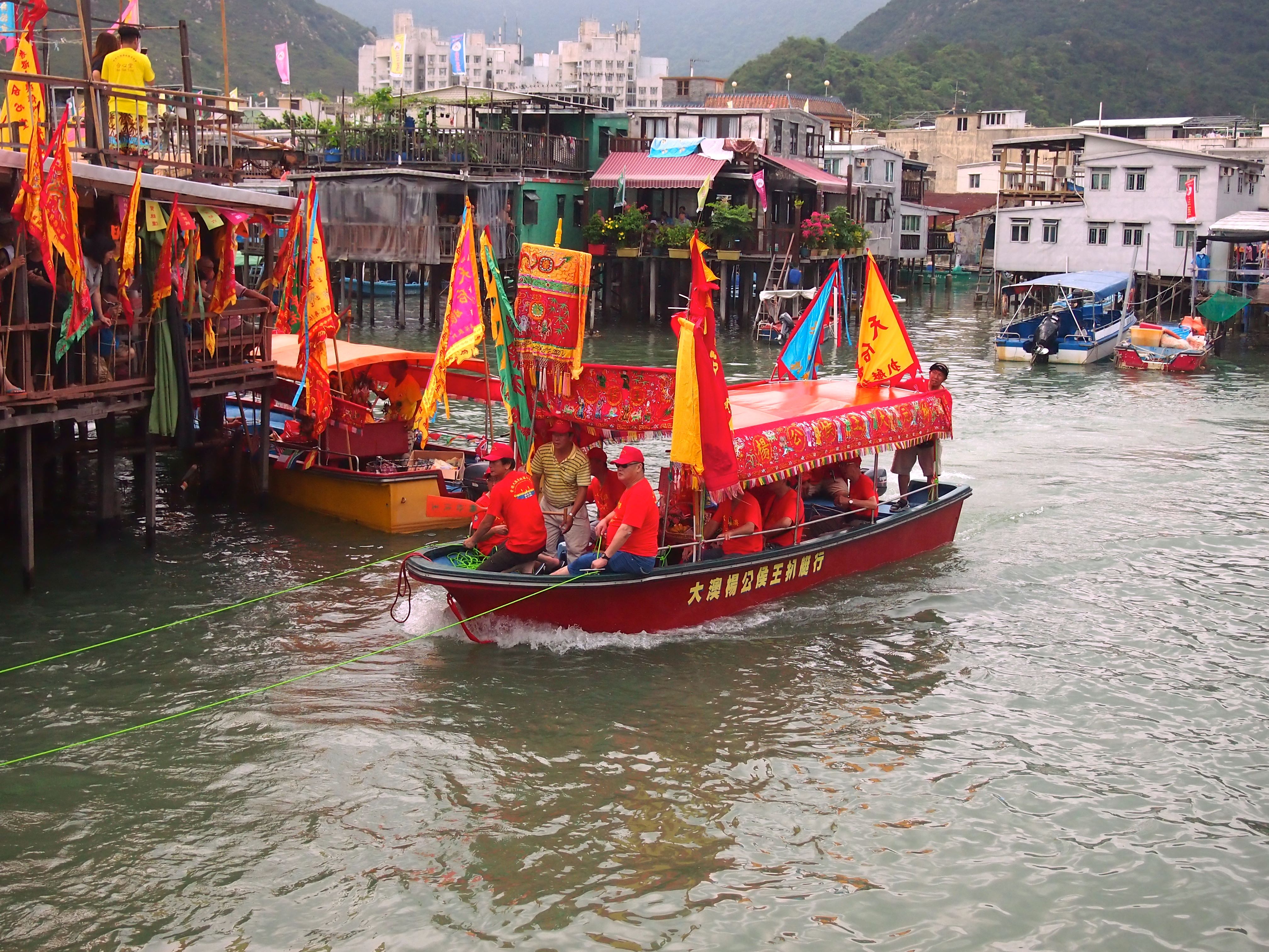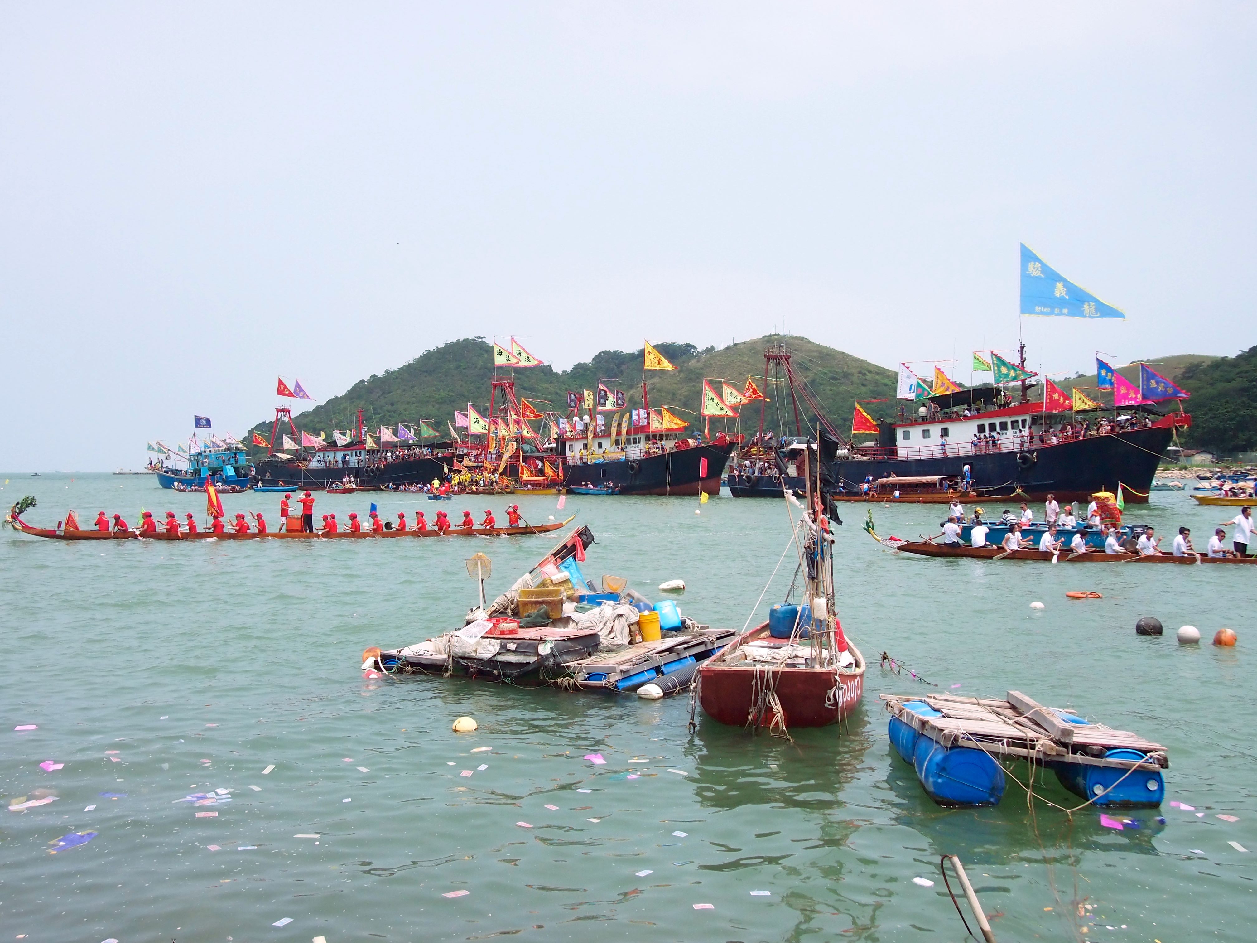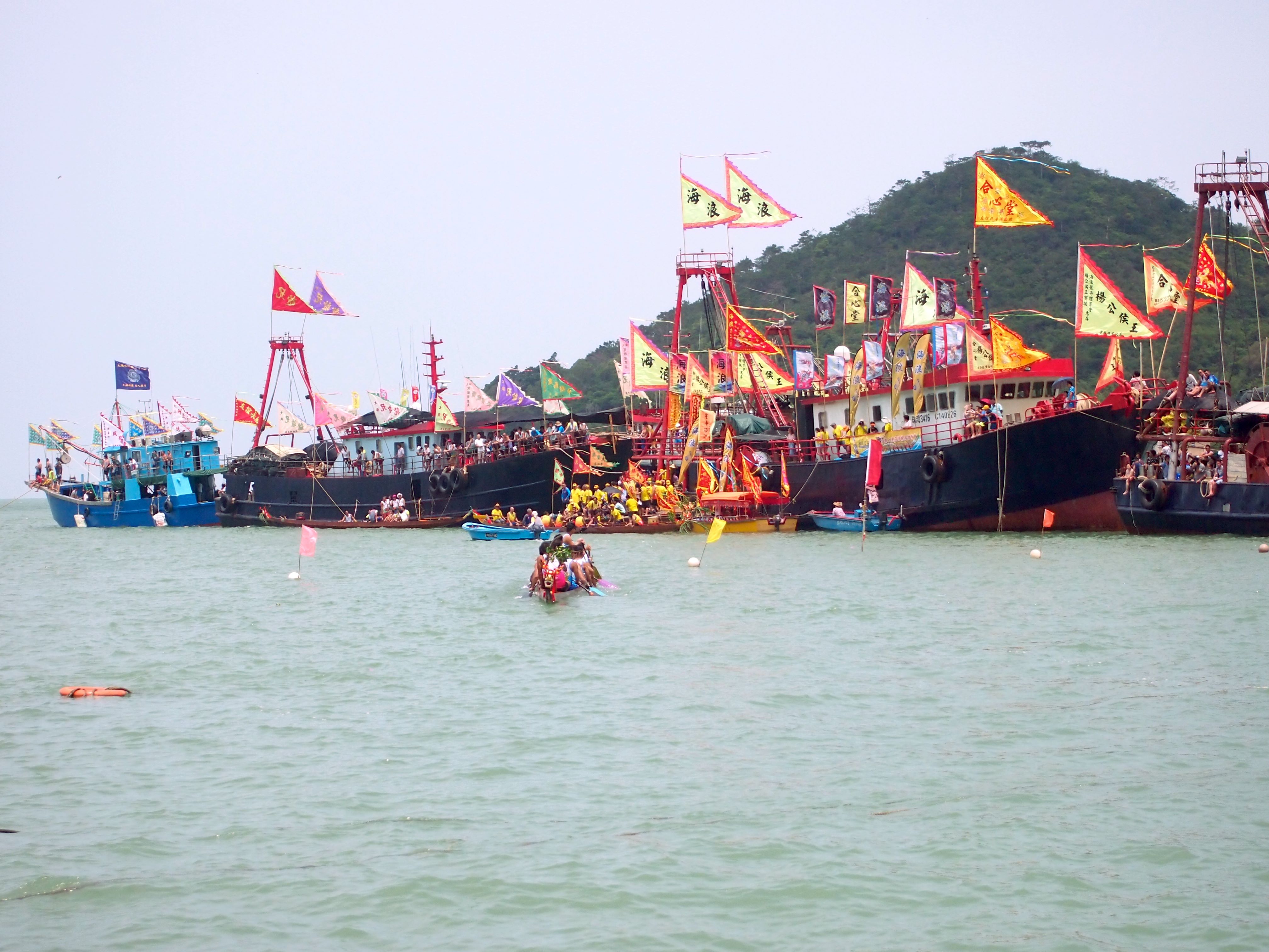 遊涌-龍舟拖著載有菩蕯小神像的神艇巡遊水道,保佑水陸居民平安。