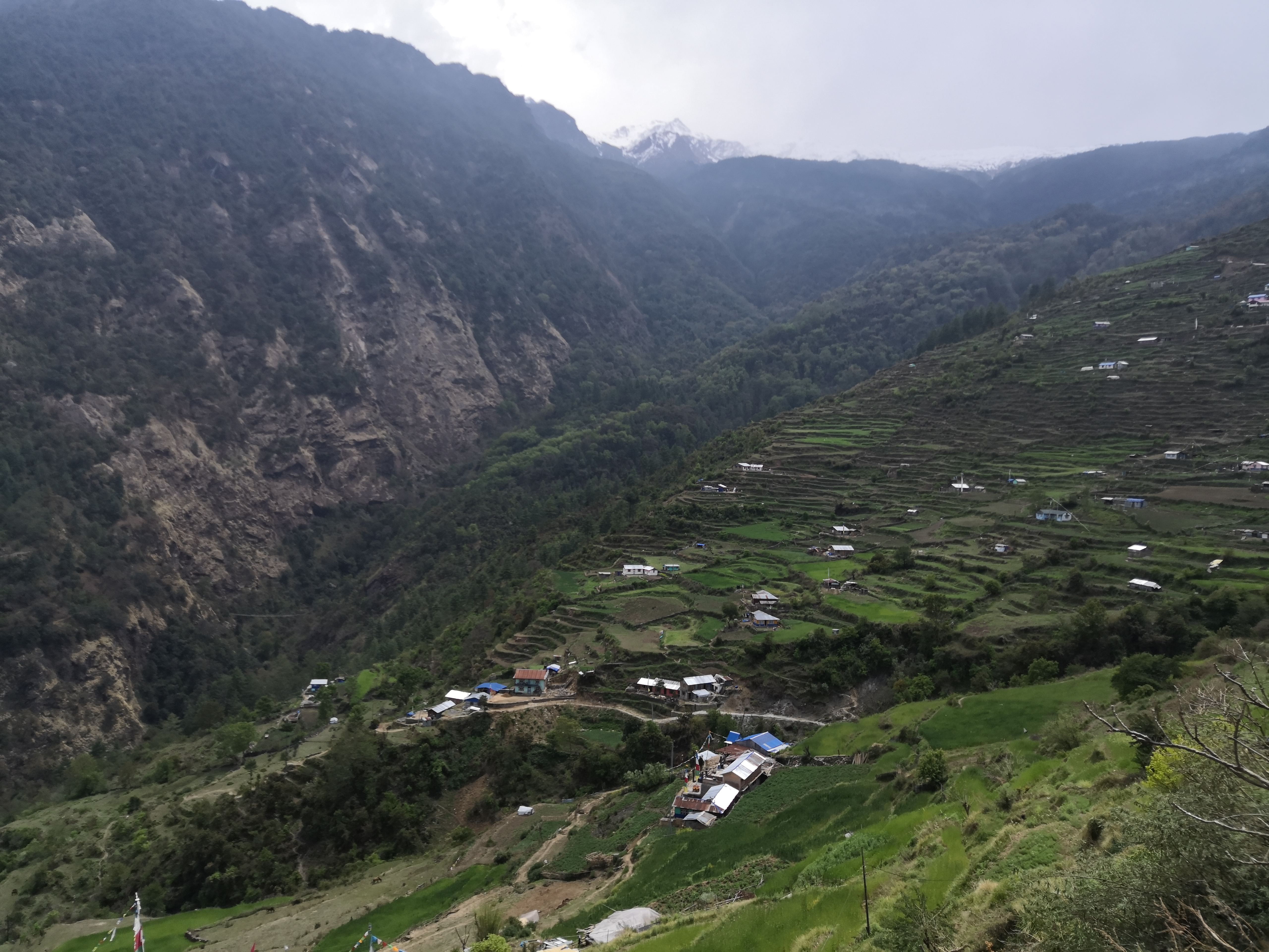 下午到達在山上的Thulo Syabu, 這條村莊很大,我們住的tea 有三層高,石屎建築,房內還有attached bathroom, 終於可以有太陽能熱水洗澡,雖然不太熱,下午有十多度的氣溫還可以。這6天來說今晚是最舒服的一晚。