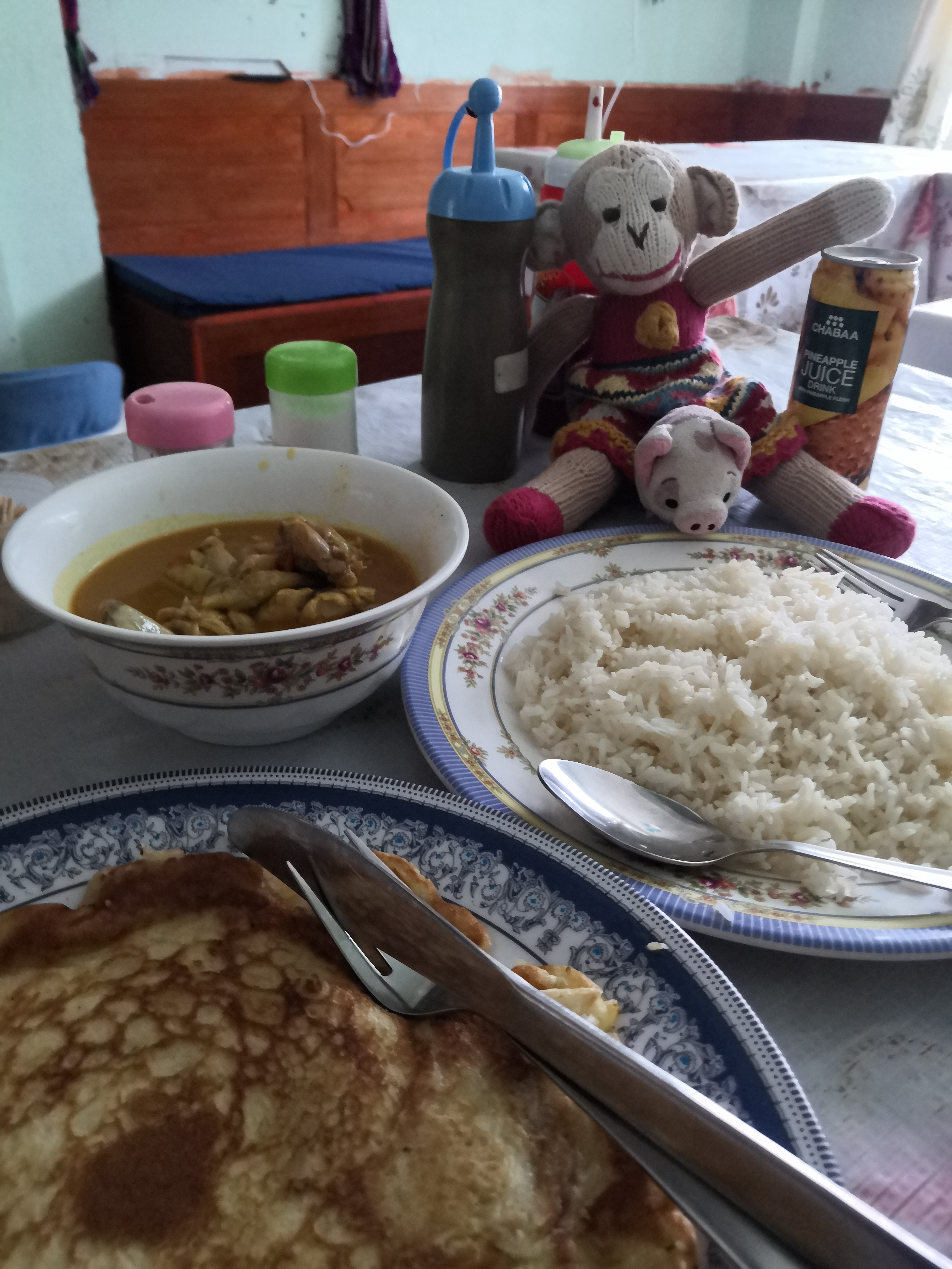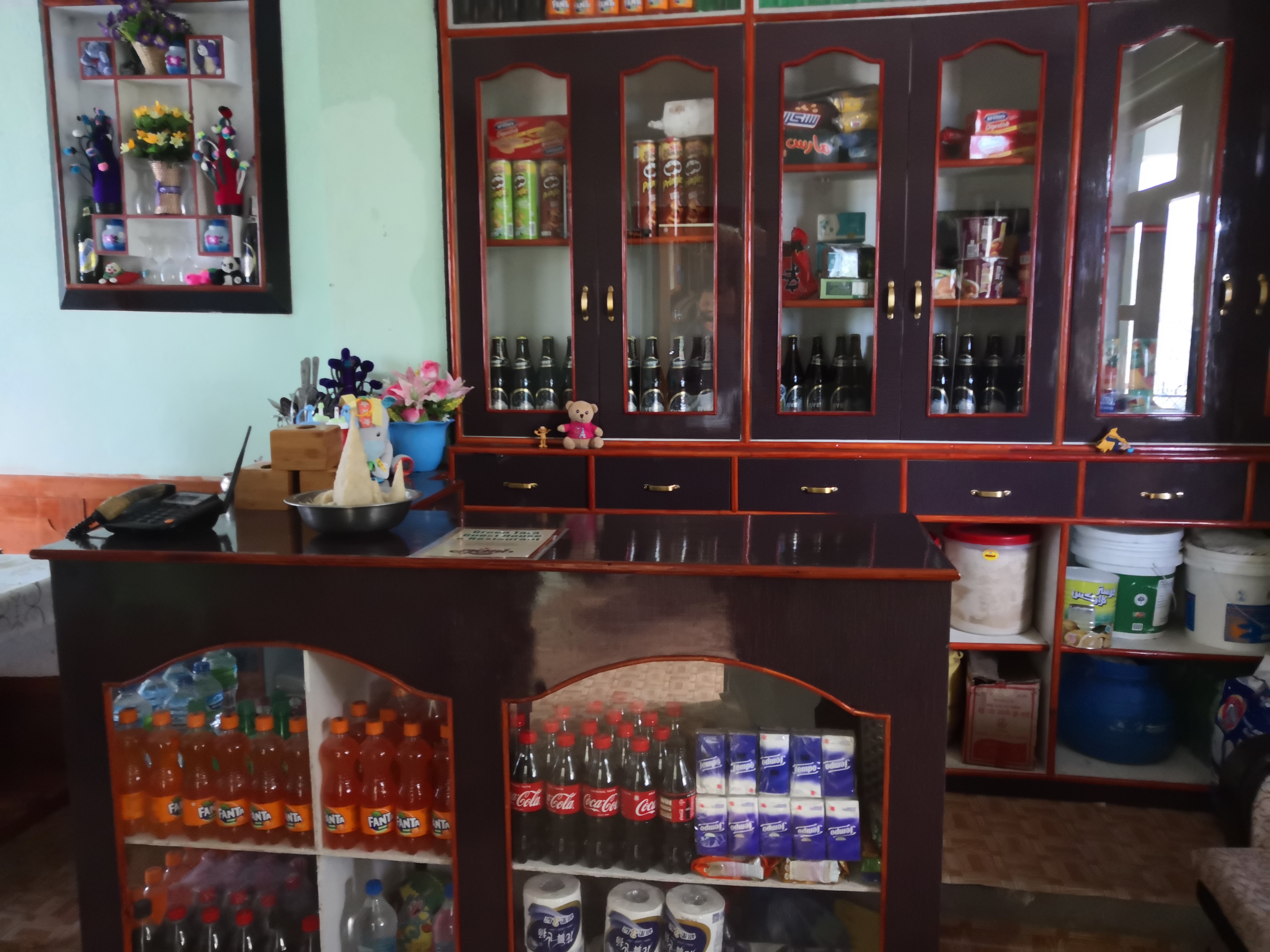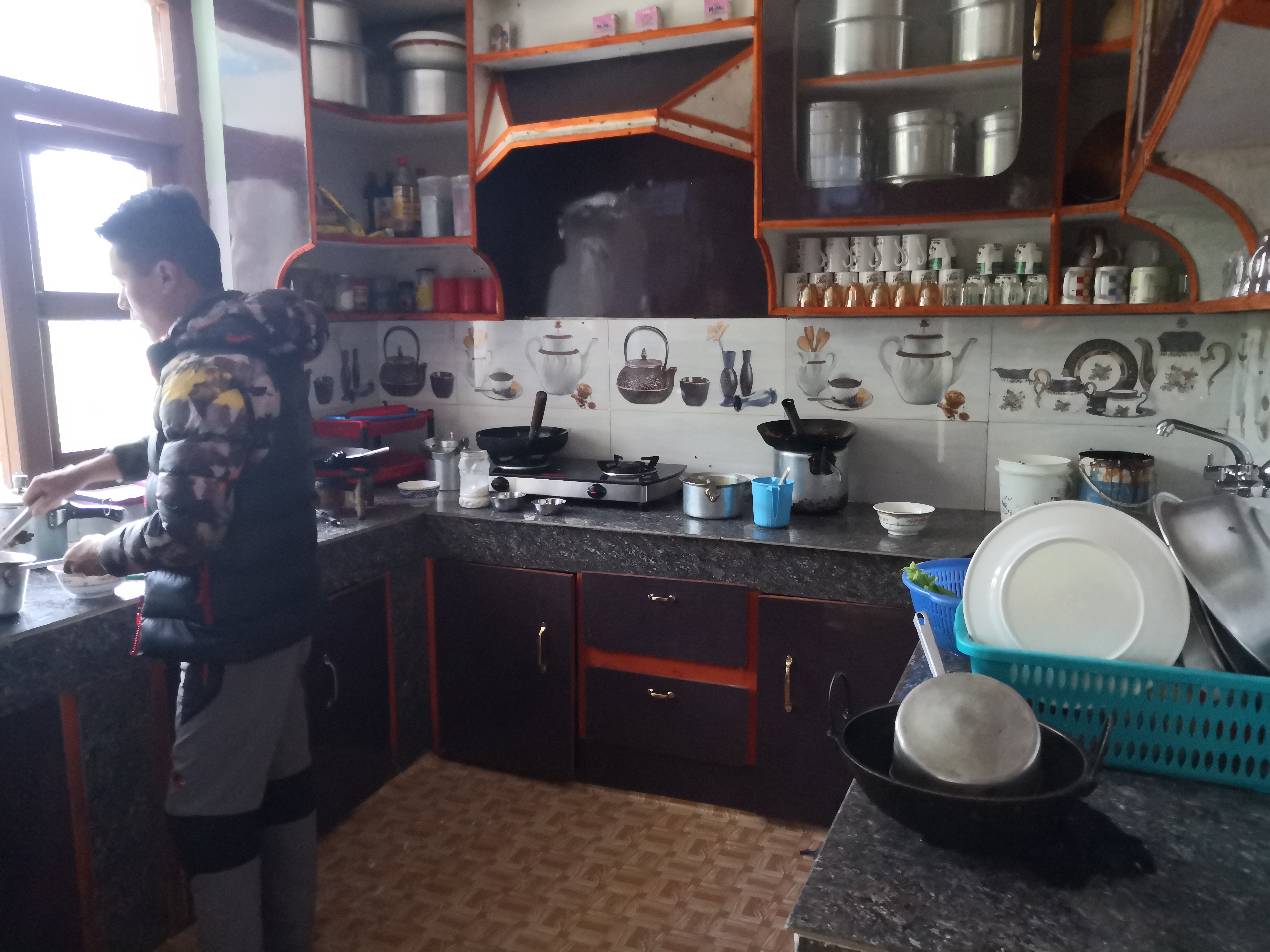 說回這間tea house, 很像農村的屋子,4間用木搭建的房間連在一起,房內只有2張床和一個12W燈泡。廁所在屋外,水喉也是,梳洗、洗衣服和煮食也是用同一個水喉。這裡養了雞、牛、狗、貓,早上準5點雞啼,真的像農村生活。