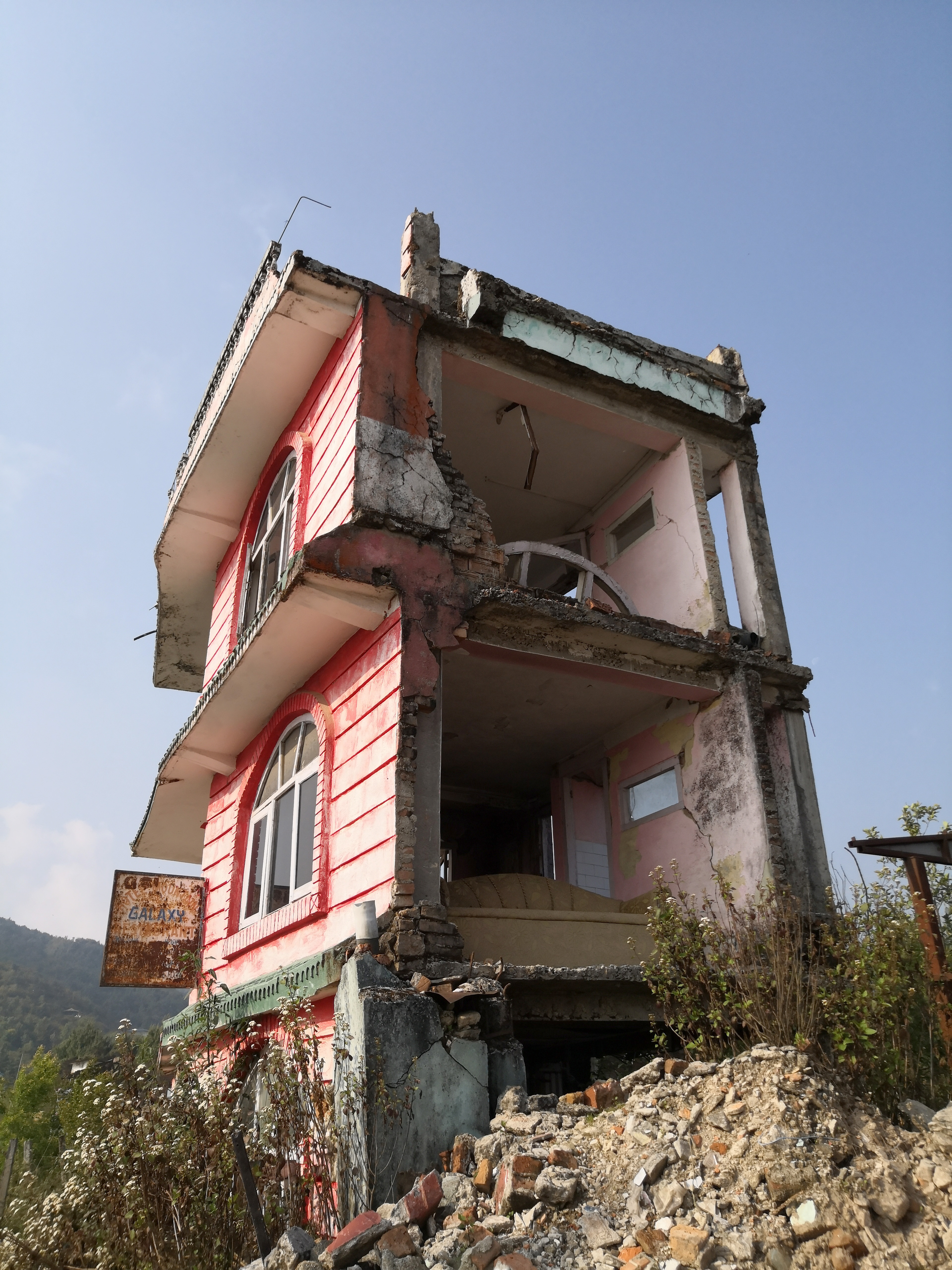 離開Hotel Chisapani,經過幾幢4年前受地震嚴重毀壞的tea house,到現在仍未重修。