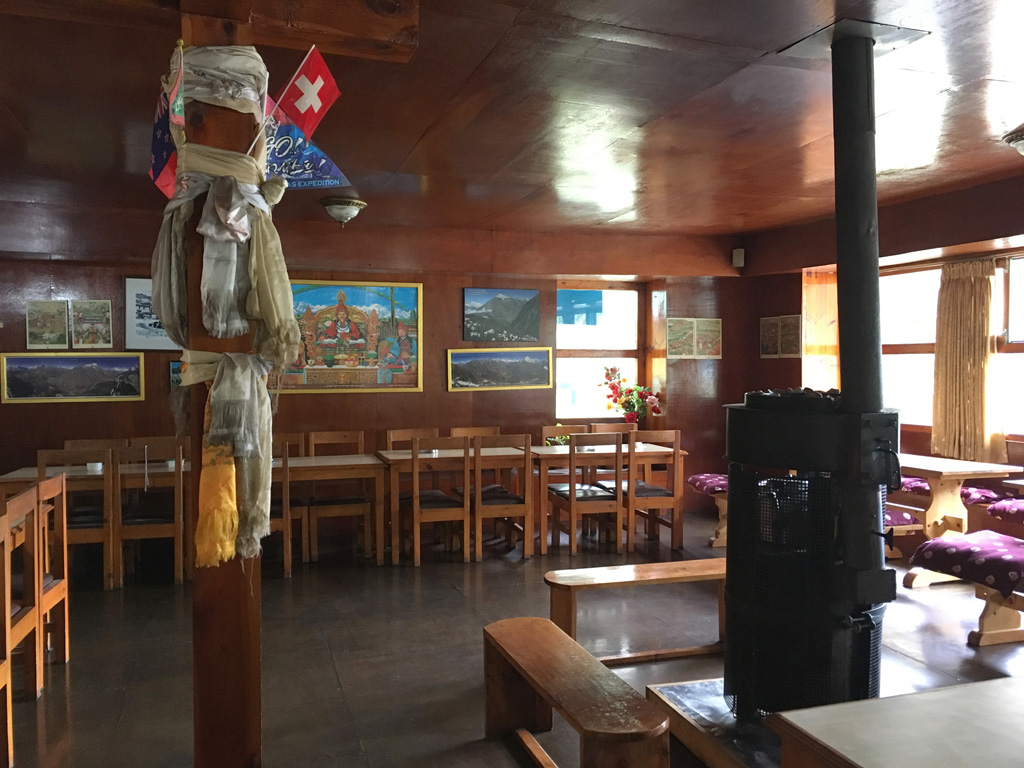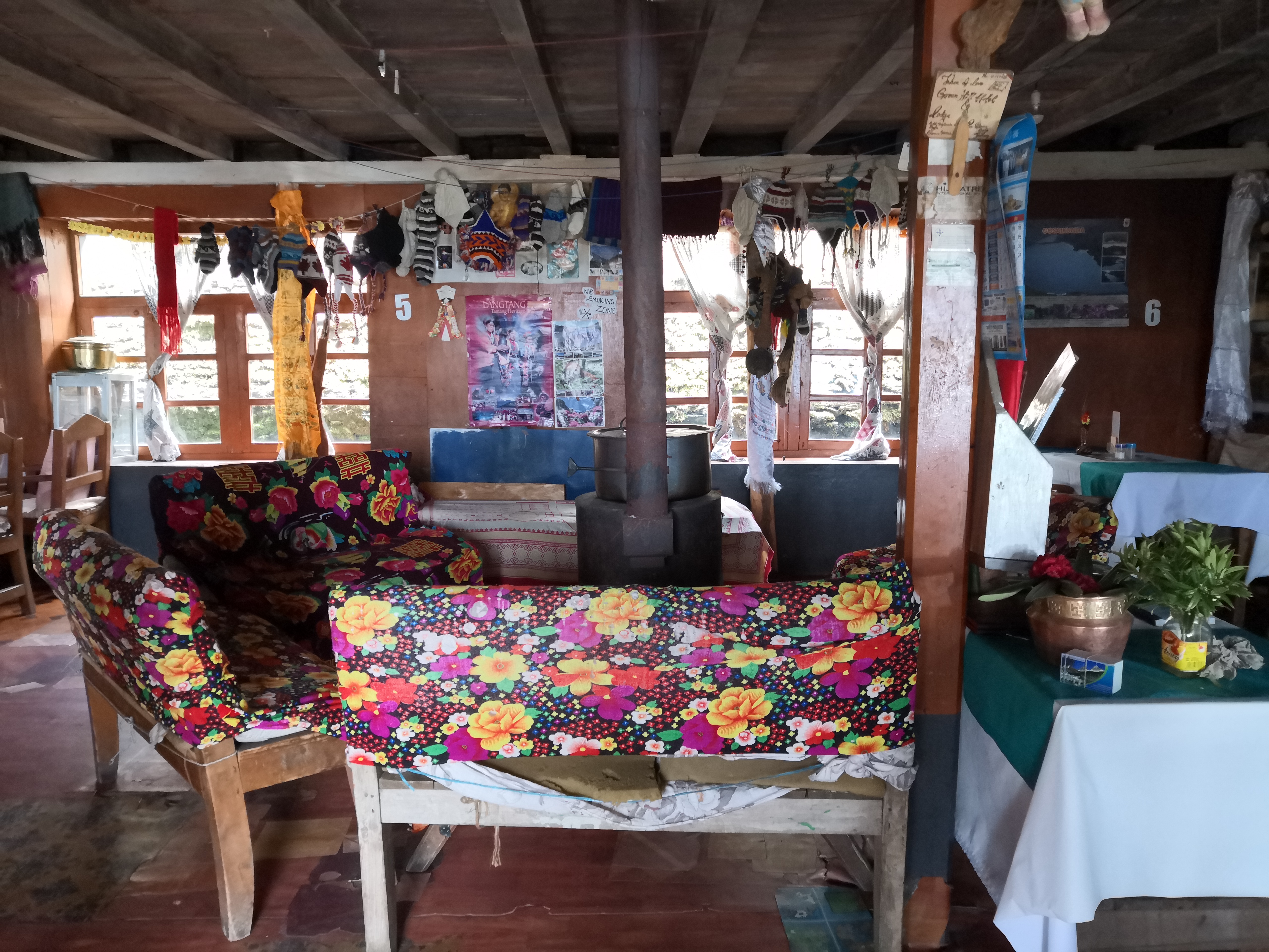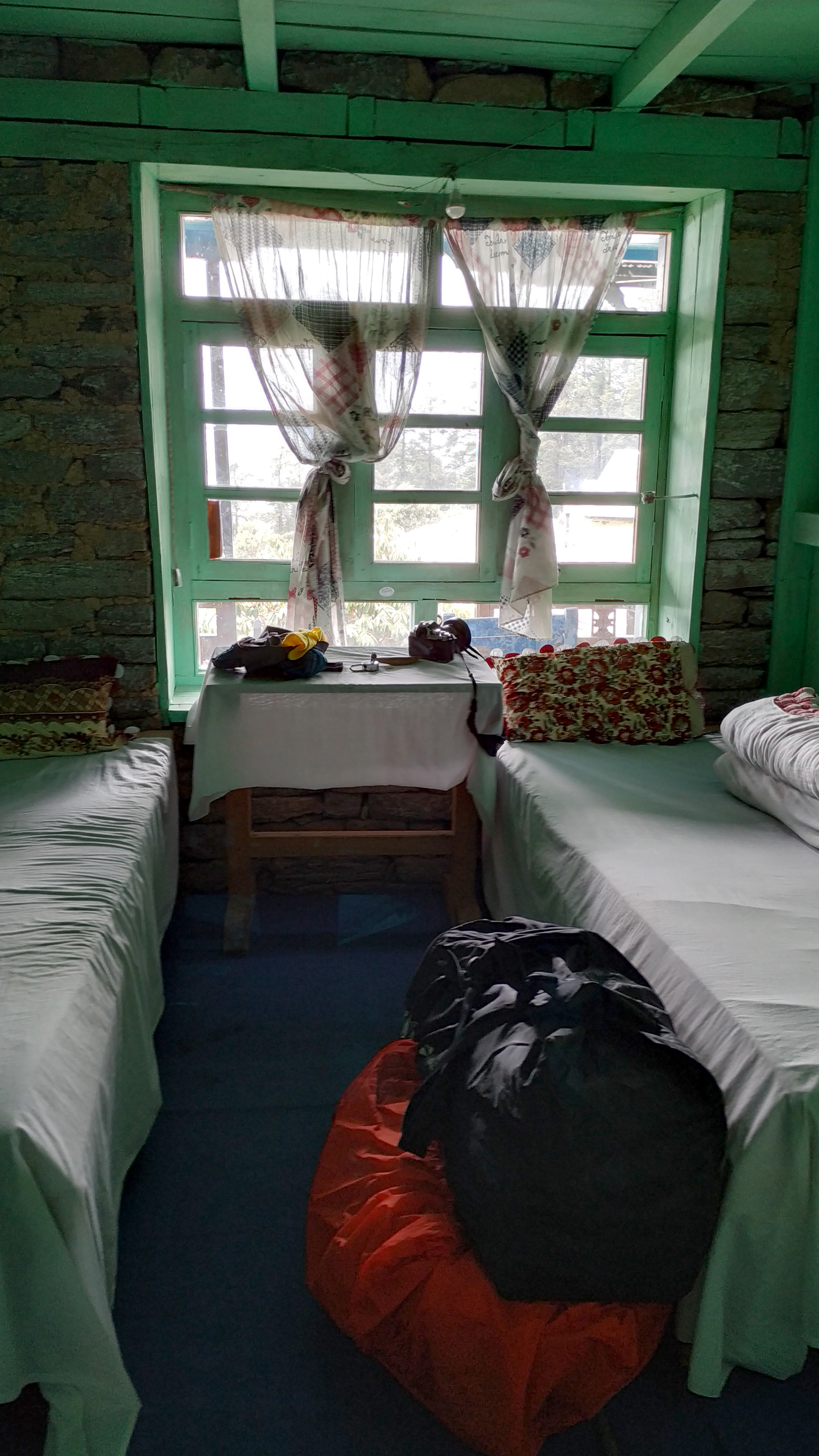Rooms – 一般tea house 的房間簡單而乾淨,有2張單人床和燈(通常是一個12V的燈泡)。基於衛生原因,我們會帶自己的睡袋和liner,不用睡袋時也可鋪上liner。房間沒有暖氣,木板之間有縫隙,在0度或以下的晚上非常寒冷,登山者都喜歡待在餐廳取暖。Tea house 通常下午便會開始燃燒木柴,大家都會聚在一起圍爐,看書、聊天、上網,洗了的衣服也可掛在爐旁焗乾,晚飯後才會返回像冰箱的房間。