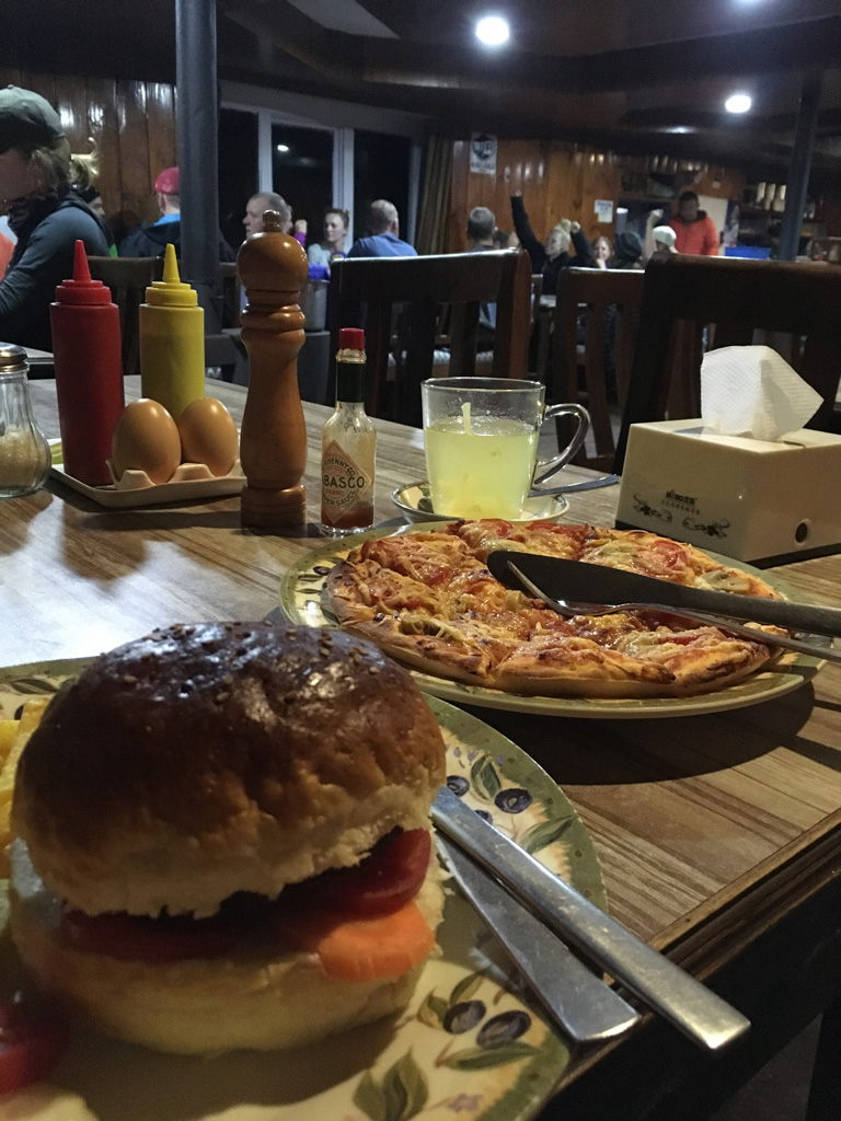 Food – 每一間tea house 提供的食物和飲品都差不多,只是Langtang trek 在Syabru Bensi之後完全沒有肉類供應。款式很有家庭味道,pizza、意粉、菜或蛋炒飯炒麵,湯麵,還有尼泊爾餐dal baht(豆湯、咖哩 、菠菜、飯)和momo(餃子)。早餐有蘋果麥皮、pancake、omelette、烚蛋,chapati,十分豐富。Guide 和porter午飯和晚飯一定吃dal bhat,因為是all you can eat,一定吃得飽。我們也很喜歡,每天其中一餐必定會吃。