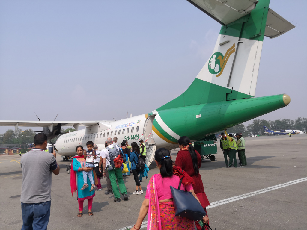 國家公園位於Kathmandu的西面靠近尼泊爾和印度邊界,由Kathmandu去有2個方法,經濟的可以坐巴士,票價約US$17,車程15個小時。我們不想在40度的天氣下坐沒有冷氣的巴士,所以選擇坐內陸機,單程票價US$155,55分鐘就到Nepalgunj,再由機場resort大約2個小時。