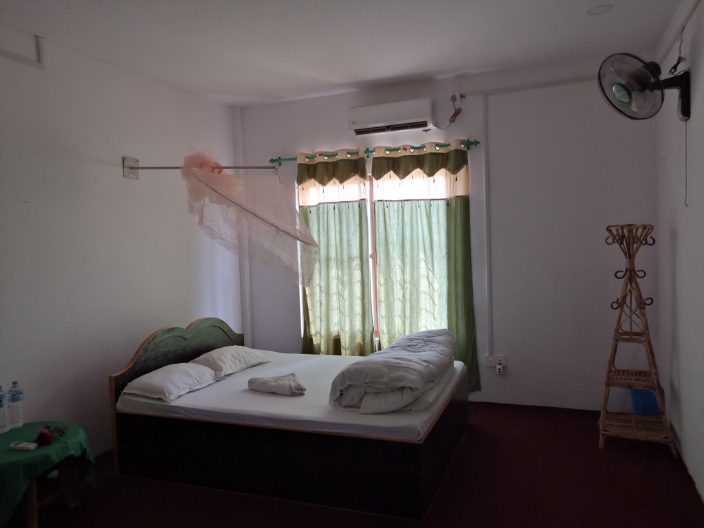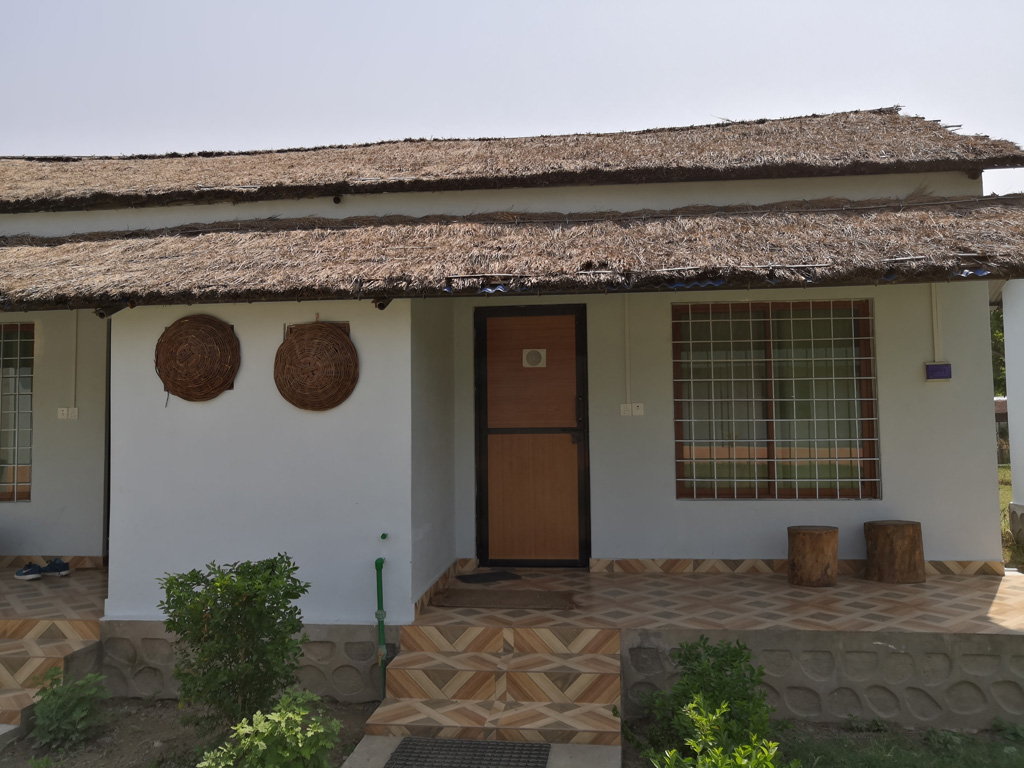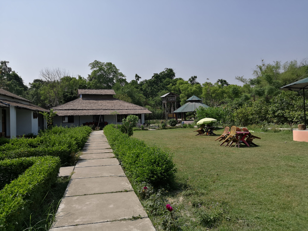 終於在1點多到達resort,老闆和老闆娘很熱情地迎接我們,送上花串和在額上用珠砂點上祝福。Resort經理Mr. V告訴我們午餐後可以小休一下,避開了最熱的中午,4點左右再到附近的Tharu village逛逛。