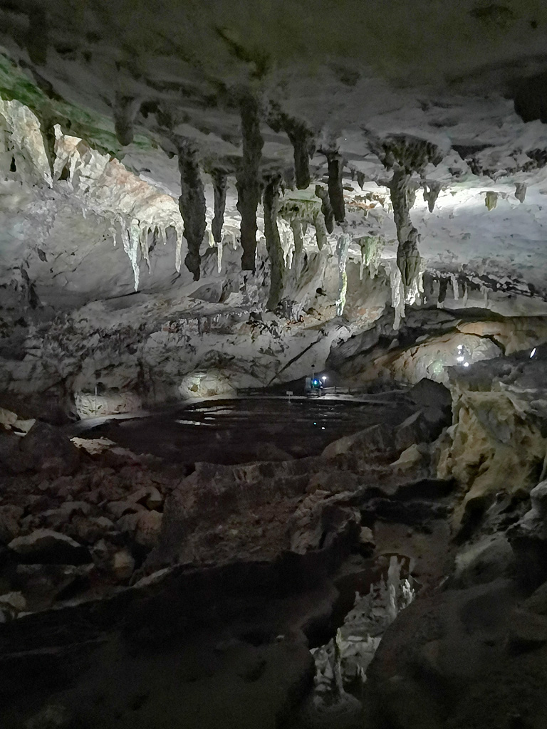 大自然鬼斧神工的藝術在秋芳洞表露無遺,令人嘆為觀止。洞內有鍾乳石洞穴、石灰柱、石筍、瀑布、像千疊敷那樣的石灰岩景觀等30多個景點,十分壯觀。慢慢欣賞也要半小時才到盡頭,我們往回走也行了一個多小時才離開。