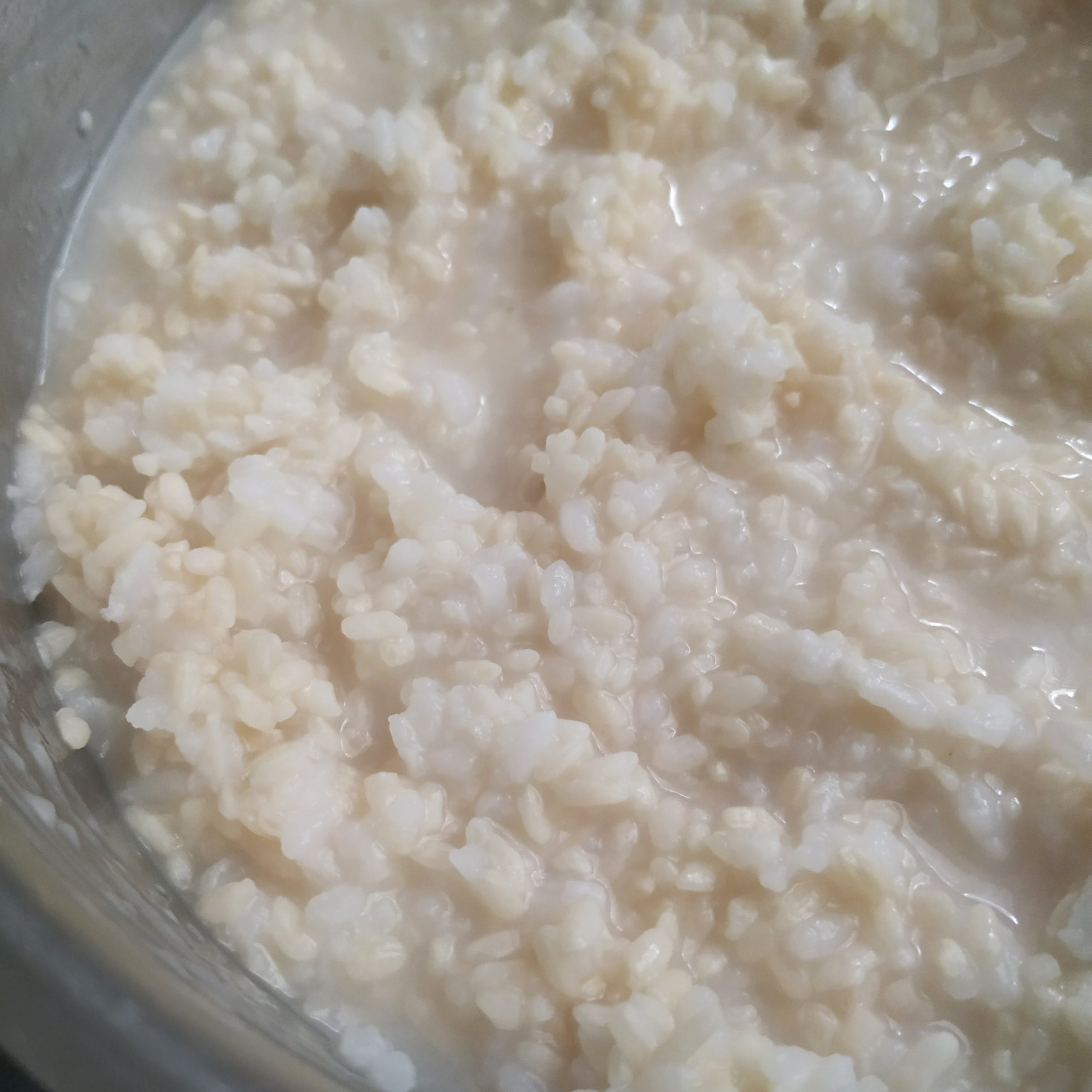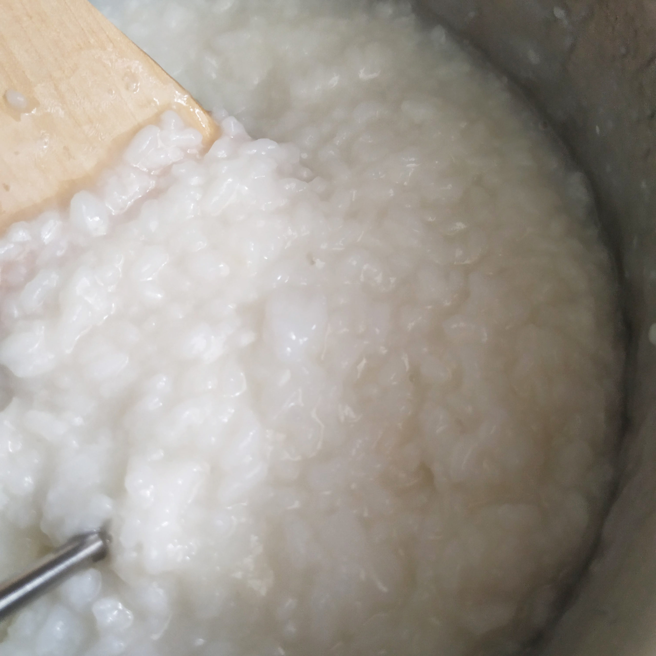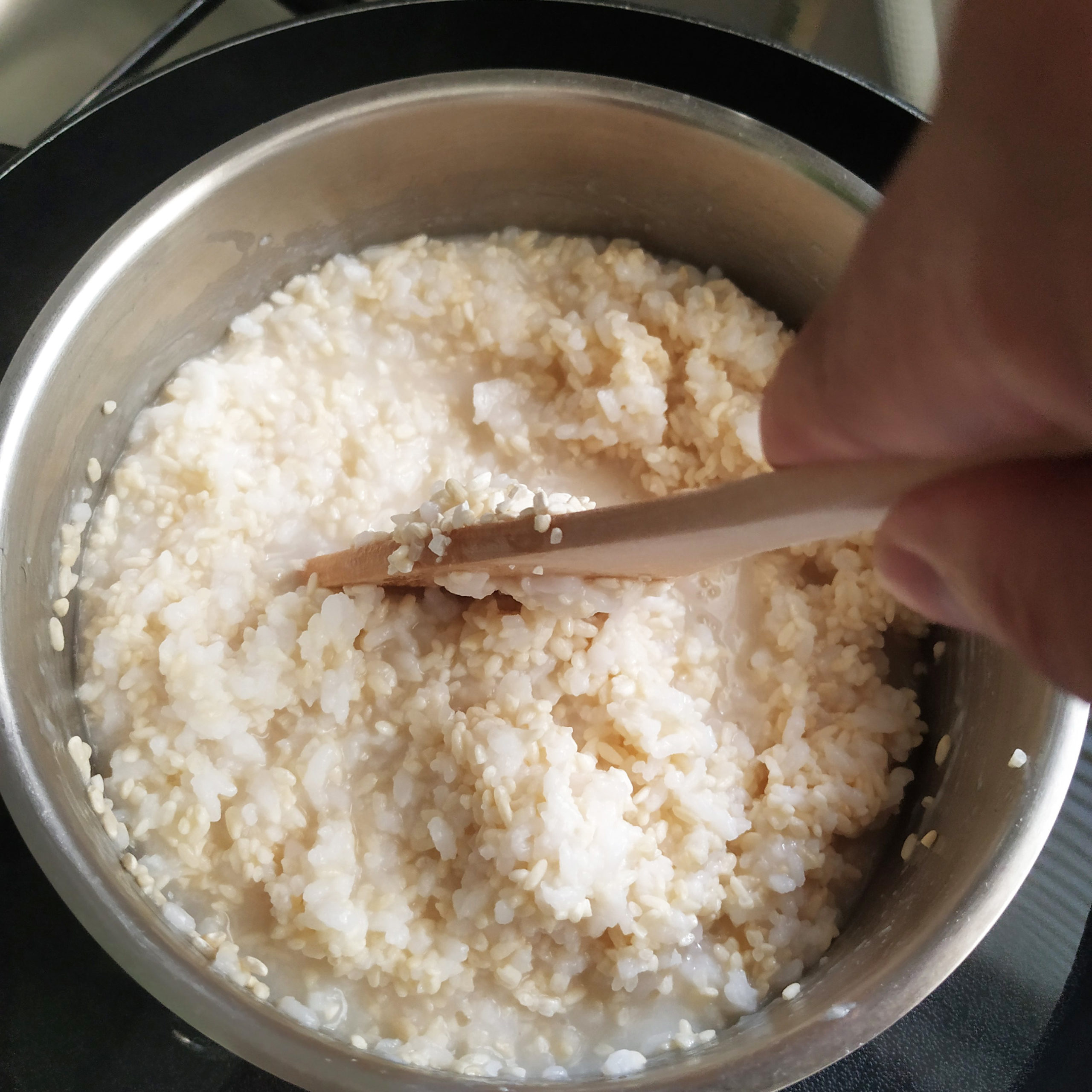 - 用電飯煲將米煮至粥,攪拌降溫至60C,加入米麹拌勻。