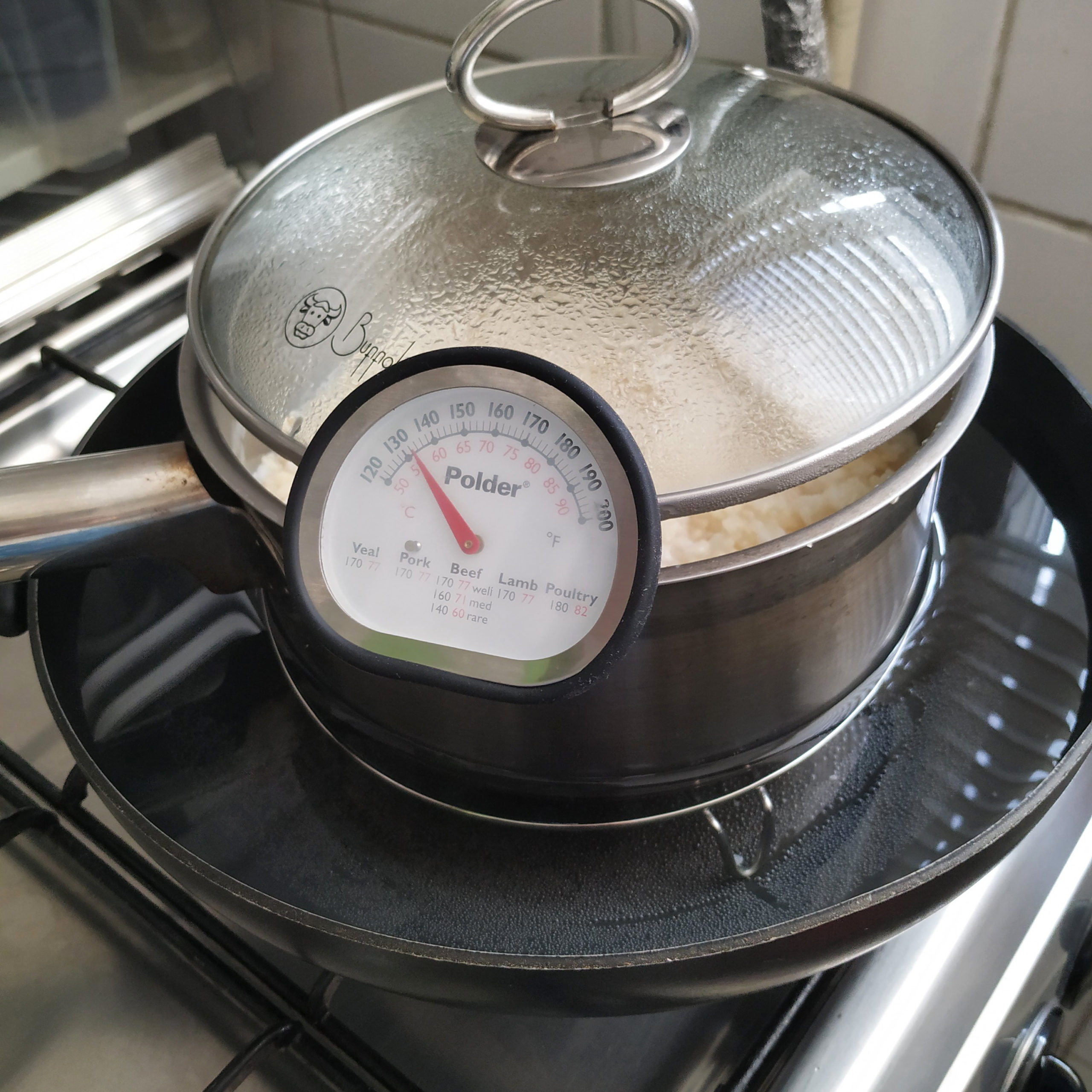 **今次用明火煮,再隔水保持50-60C。