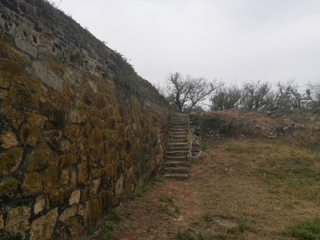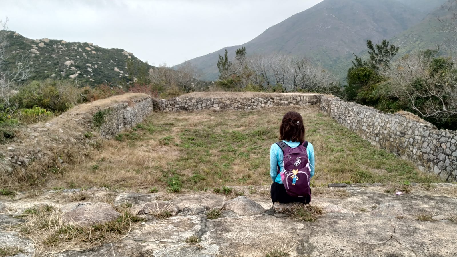 由石壁起步,沿狗嶺涌引水道行,我們沒有去觀景台,繼續行鳳凰徑至分流郊遊徑。沿分流郊遊徑落到分流東灣,行至沙灘盡頭登上石級便到分流石筍,此石筍體積十分巨大,像是突然從山崗上冒出。繼續前行就到分流炮台的遺跡,現只剩下四邊的圍牆。炮台建於1729年,是本港最早建成的炮台,於1981年列為法定古蹟。炮台位處大嶼山具戰略價值之西南角,守衞珠江囗通往廣州的海峽,用以防禦海盜。
