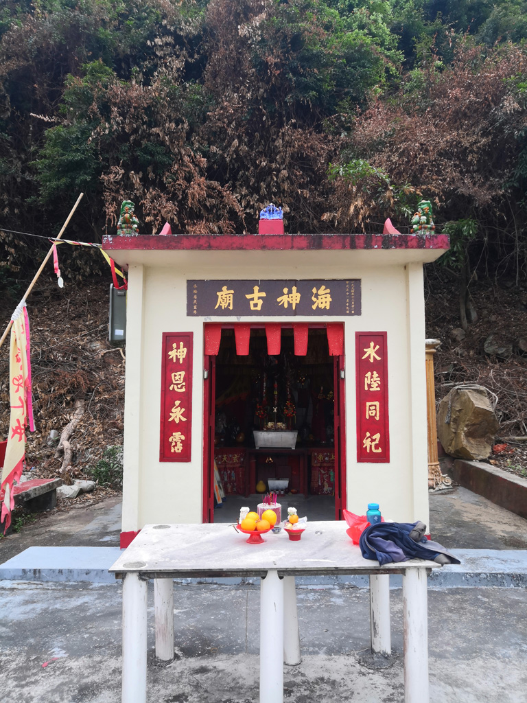 看完石圓環返回郊遊徑,對面有一隱蔽小徑入囗,沿路走往沙灘,小徑的樹木較密,但很易走,5分鐘便到海灘,左邊就是天后廟。門打開了,可入內參觀。之後沿路返回郊遊徑,經過分流西灣後,我們沒有入村,繼續往二澳進發。到達二澳後見到很大片復耕後的農地,幾年前來滿是高過人的野草,現在已變回種稻田的濕地和菜田。穿越農田後再沿大路前行便可到達二澳新村,見到有荒廢的屋及一些棄置的農具和機器。