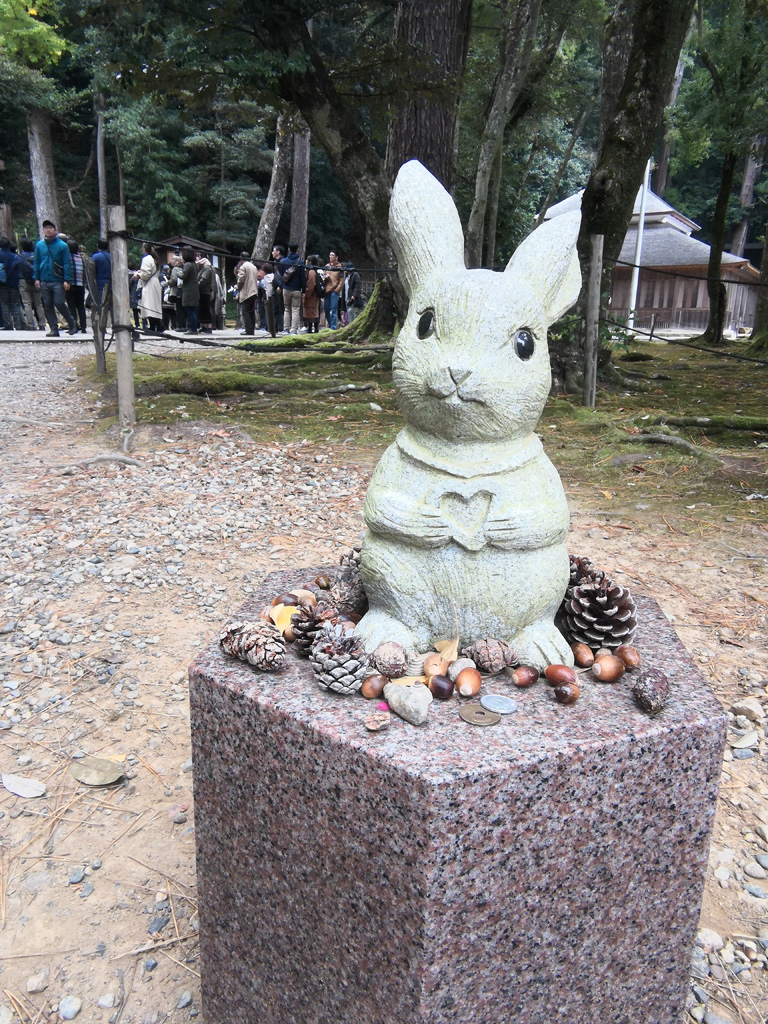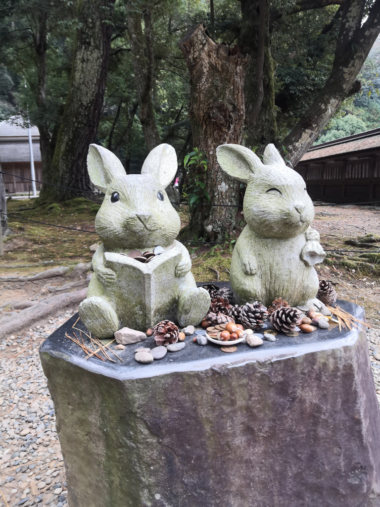 在本殿、神苑、神樂殿周邊可以看到46隻兔子石像,這些白兔姿勢和表情都各有不同,有些還有名字,十分可愛。