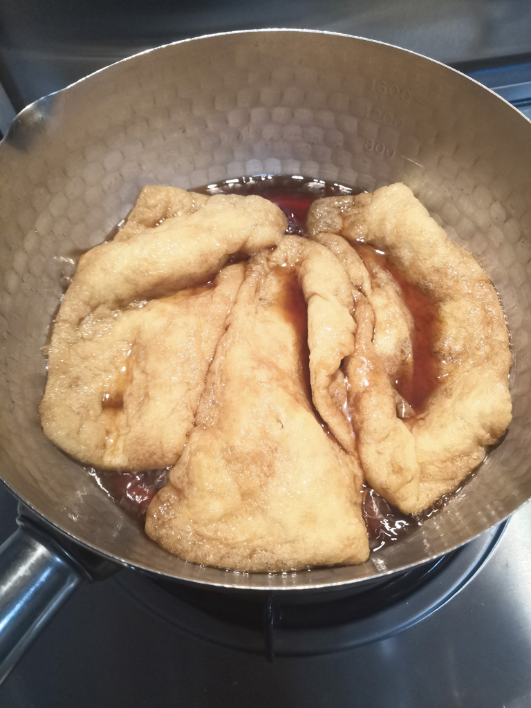 Japanese kitchen 日式廚房 Meals Recipes 豆腐料理甘辛油揚げの卵とじ丼 腐皮雞蛋丼 April 21, 2020 甘辛油揚げの卵とじ丼 腐皮雞蛋丼用腐皮代替雞肉的素版親子飯。 材料2片 腐皮2個 雞蛋 少許 酒適量 高湯做法將腐皮飛水,瀝乾,放入雪平鍋,加入半杯高湯,7g砂糖,1.5-2湯匙醬油,少許鹽,蓋上落蓋煮至汁差不多收乾,取出,切方塊。將腐皮放入平底鍋,加酒、高湯煮片刻,加入已打散的雞蛋煮至半熟。碗內裝入白飯,上面放上3即可。 Recommended Japanese kitchen 日式廚房甘辛油揚げの卵とじ丼腐皮雞蛋丼豆腐料理 0 ← Previous Post春天湯水 [蓮藕花生眉豆素湯] Next Post →油揚げとキャベジ炒め 椰菜炒豆腐皮 You Might Also Like 鯛焼き 小鯛魚蛋糕 Mini Honey Milk Bread 迷你蜂蜜鮮奶包 Mini Cube Bread 迷你方麵包No CommentsLeave a Reply Cancel ReplyName * Email * Website ΔThis site uses Akismet to reduce spam. Learn how your comment data is processed.